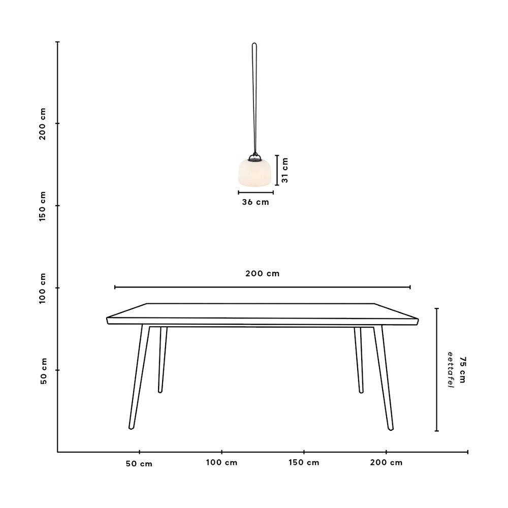 - Multifunctioneel: als tafellamp, vloerlamp of hanglamp