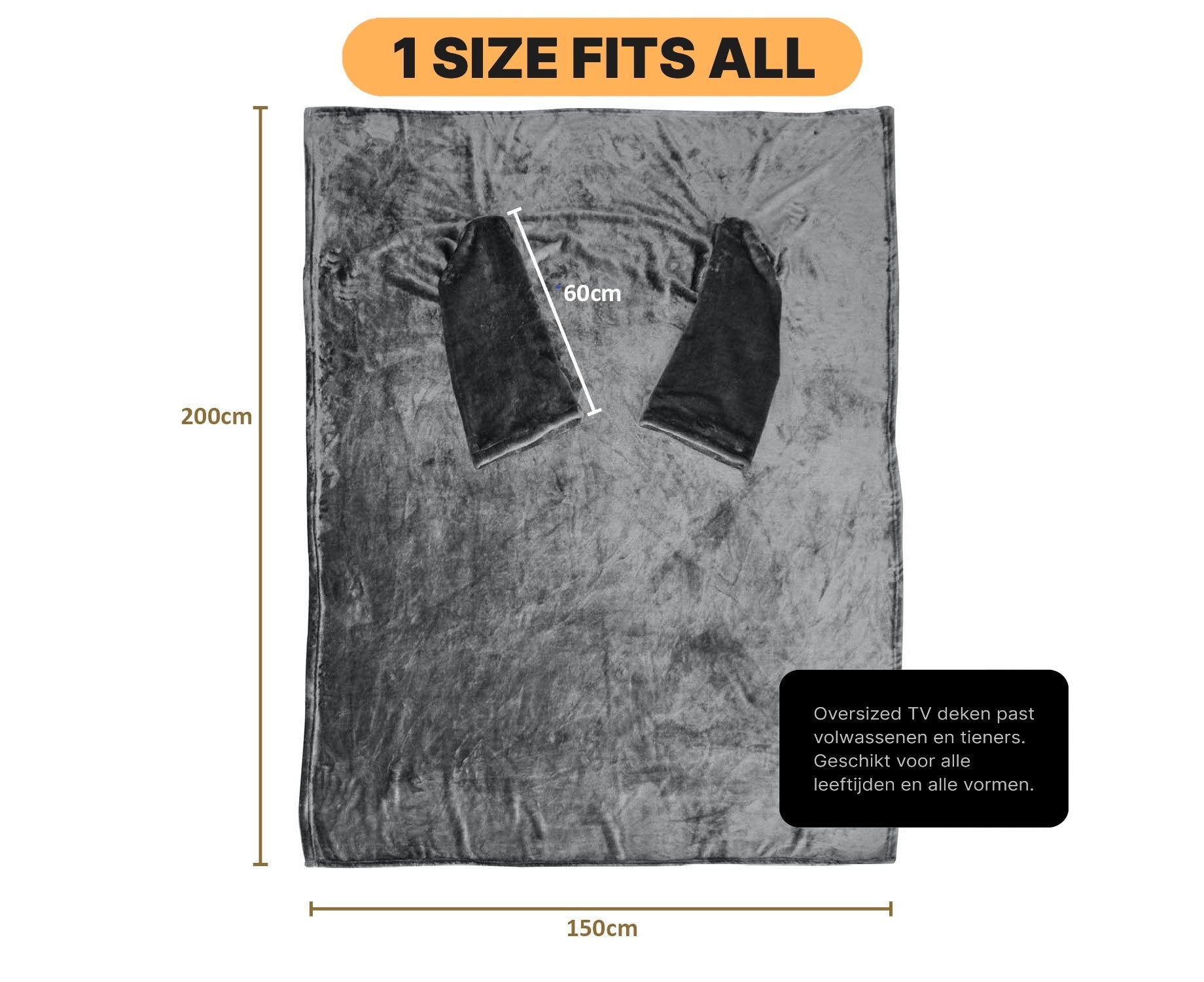 - XXL: Dit heerlijke plaid heeft een afmeting van 150 x 200 (b x L) waar je volledig onder kan liggen.