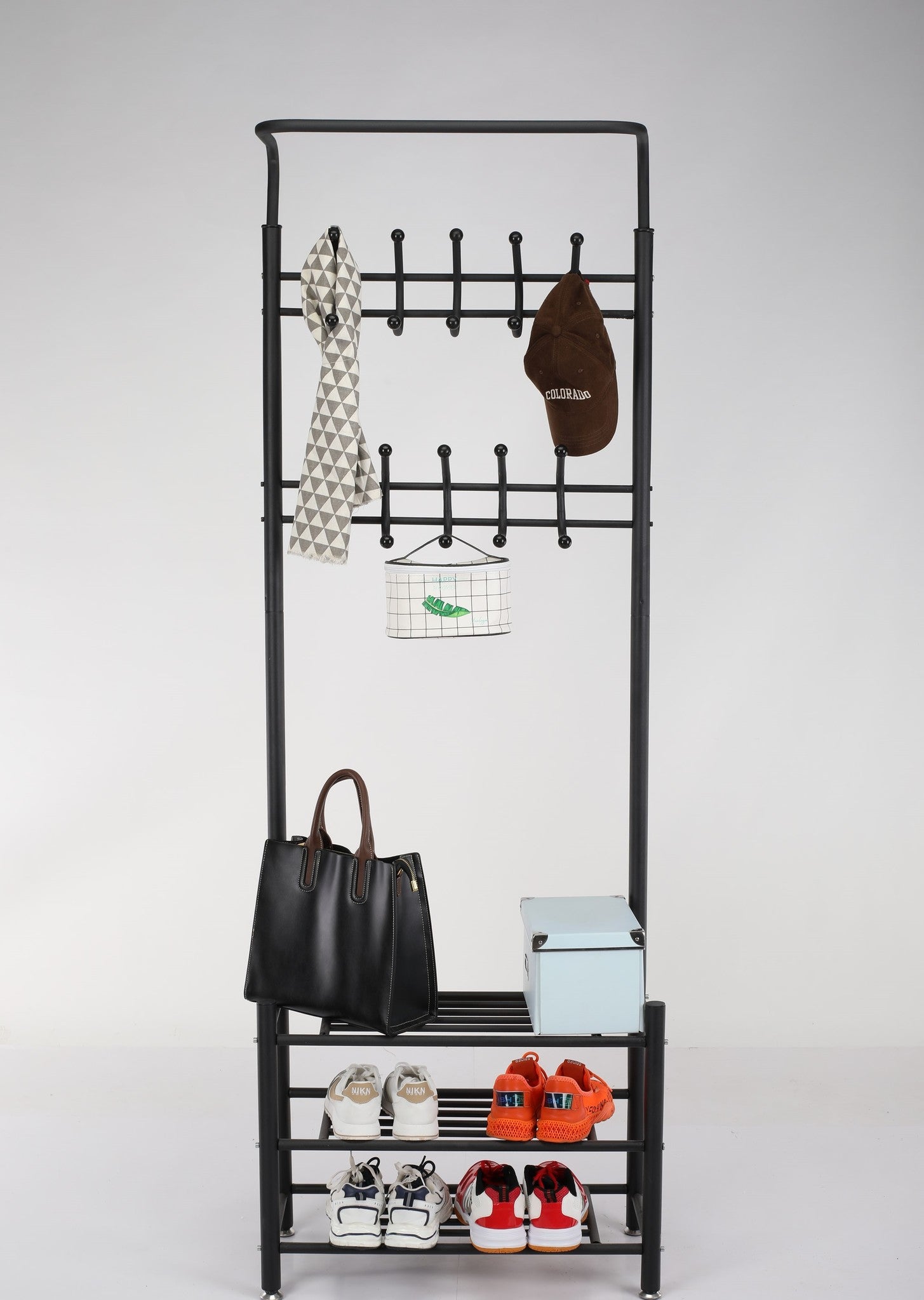 O'DADDY® kapstok staand - schoenenrek - 18 haken - 66x30x190cm - zwart