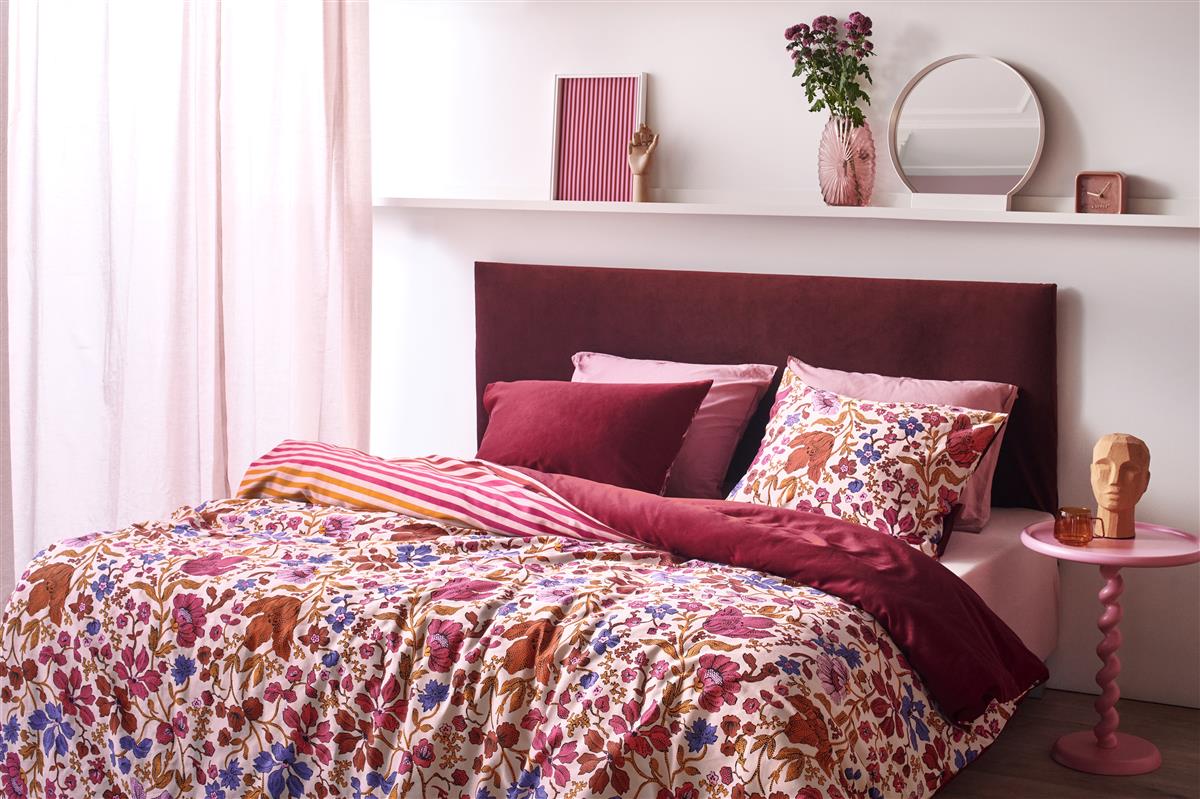 Het dekbedovertrek Joyful Tulip van Oilily heeft een prachtig bloemendessin met een moderne, trendy uitstraling. De allover bloemenprint met tulpen en kleine bloemetjes is gedetailleerd en sierlijk. De bekende Oilily-kleuren rood, roze en oranje worden gecombineerd in de slingerende bloemen op een nude ondergrond. De bovenzijde van het overtrek heeft horizontale strepen in dezelfde kleuren. De achterzijde van het overtrek is effen rood, wat zorgt voor een mooi warm contrast. Fleur je slaapkamer op met dit prachtige dekbedovertrek van Oilily!Over OililyBedtextiel van Oilily staat bekend om unieke kleurcombinaties, vrolijke ontwerpen, rijke en unieke prints en oog voor detail.Duurzame verpakkingDe verpakking is niet alleen mooi maar ook nog eens duurzaam. Om het dekbedovertrek heen zit een banderol gemaakt van FSC-karton. De banderol heeft in het midden een uitsnede, zodat je het dessin goed kunt zien. Gooi de banderol weg met het karton voor recycling.