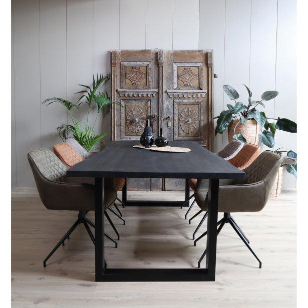 Old Inn Boomstamtafel Industrieel Acaciahout Zwart 220x100 U poot smal