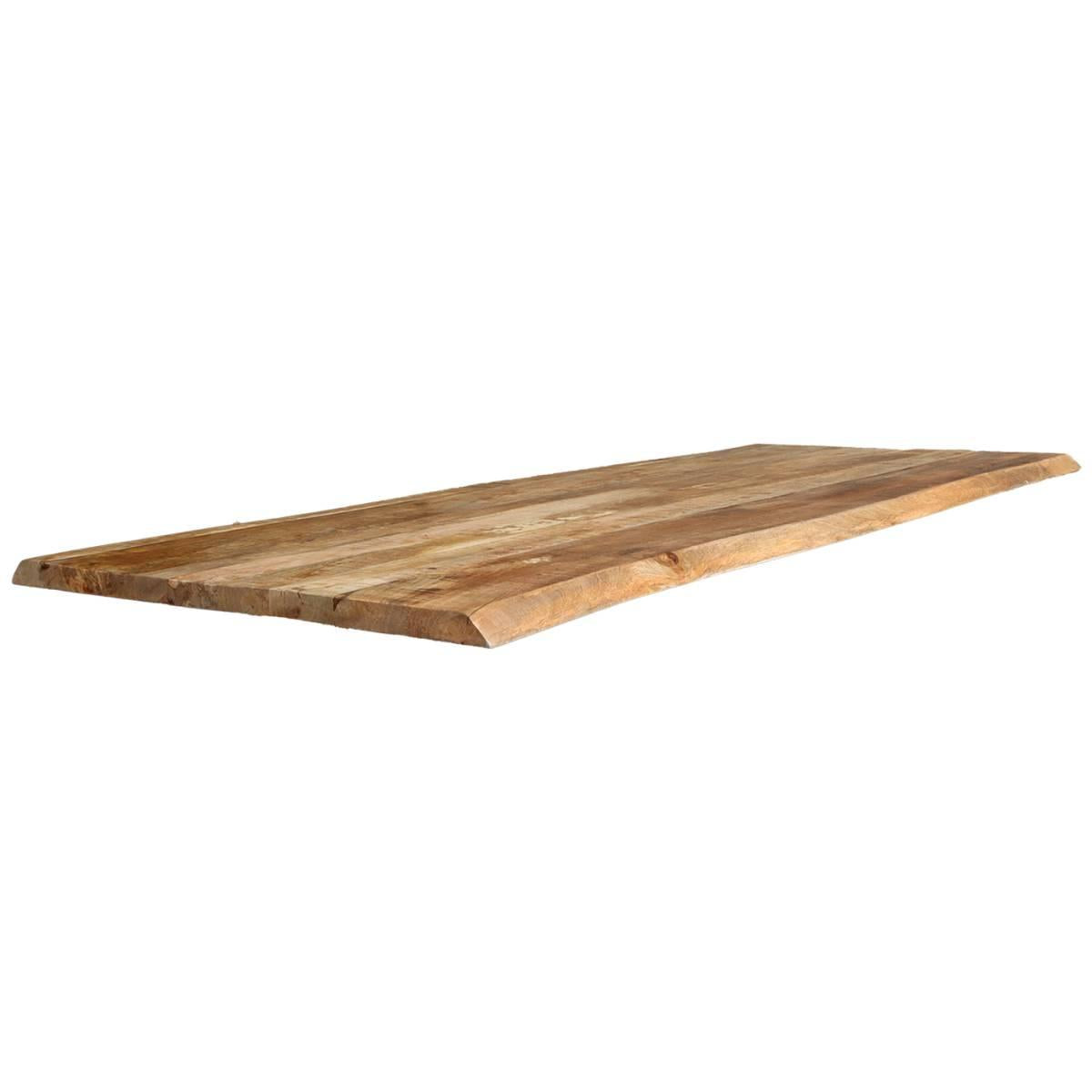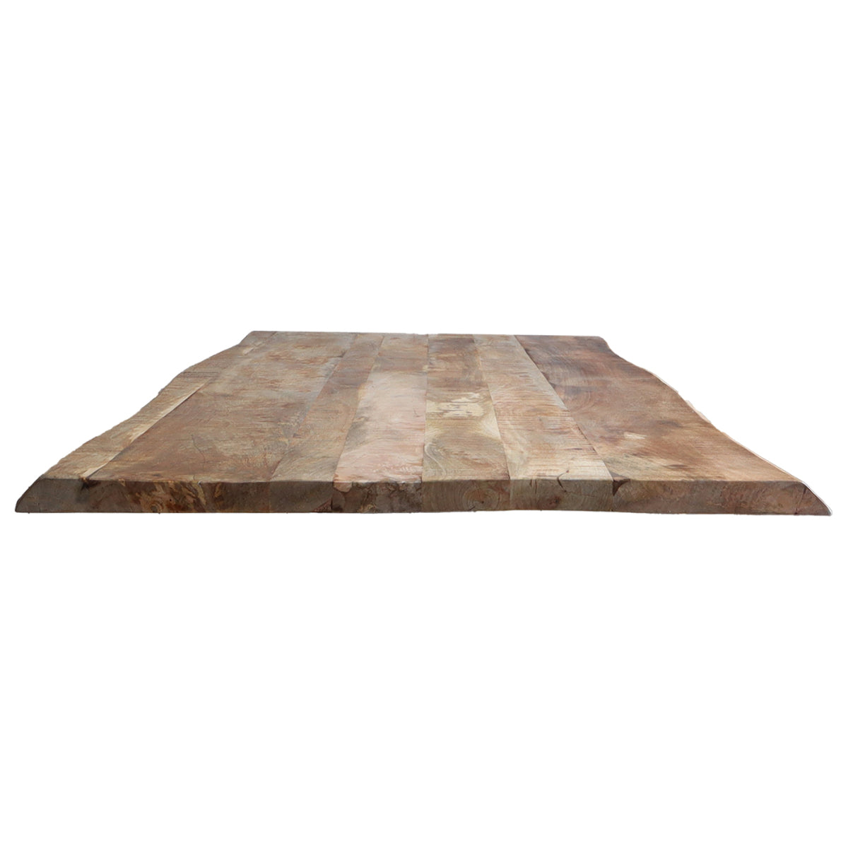 Het tafelblad is gemaakt van massief mangohout en is niet opgedikt met een extra rand.