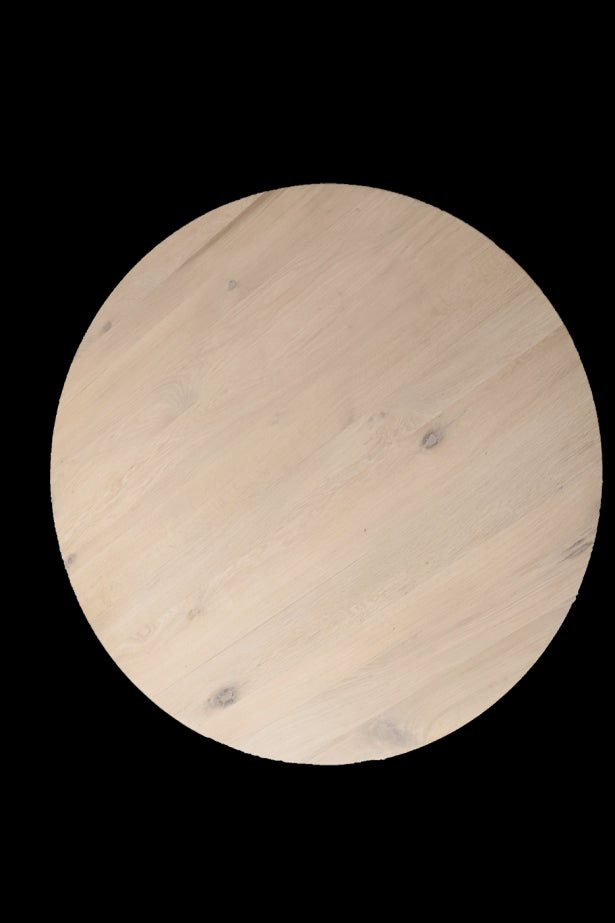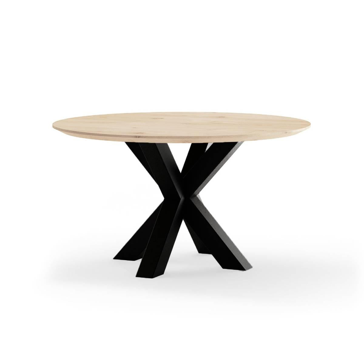 Eetkamertafel rond industrieel met schuin afgewerkt tafelblad. De ronde eetkamertafel heeft een tafelblad van onbewerkt eikenhout en een zwart stalen sterpoot. De ronde tafel is weer helemaal terug van weggeweest! Deze mooie ronde tafel heeft een tafelblad met een facet rand. Dit is een schuine tafelrand. De industriële tafel heeft een tafelblad van massief eikenhout en is niet opgedikt met een extra rand. De bruine eettafel heeft een industriële uitstraling dankzij het prachtige tafelblad van onbewerkt eikenhout en de zwart metalen sterpoot. Het combineren van een eikenhouten blad met een zwart metalen onderstel geeft een mooie industriële look. In tegenstelling tot mangohout en acaciahout heeft eiken een rustige naturel uitstraling.