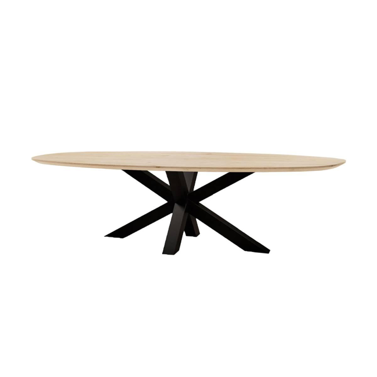 Eettafel ovaal industrieel met schuine rand van onbewerkt eikenhout ✓ Type tafel: Eettafel ✓ Vorm tafelblad: Deens ovaal met schuine facet rand ✓ Materiaal tafelblad: Eikenhout ✓ Kleur tafelblad: Naturel ✓ Afwerking tafelblad: Onbehandeld ✓ Dikte tafelblad: 5cm ✓ Type onderstel: Spinpoot ✓ Materiaal onderstel: Staal ✓ Kleur onderstel: Zwart ✓ Aantal personen: 6 ✓ LxBxH: 240x110x77cm ✓ Merk: Old Inn Wonen