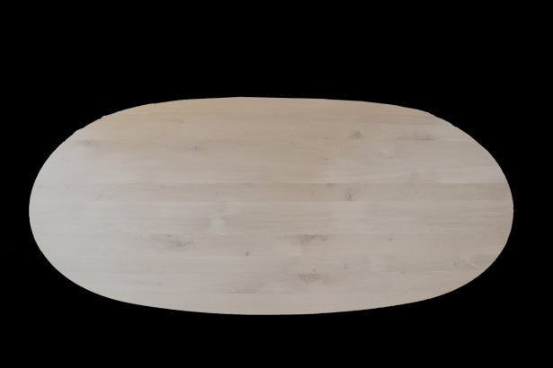 Deze mooie ovale eettafel heeft een tafelblad met een facet rand. Dit is een schuine tafelrand. Het tafelblad is gemaakt van massief eikenhout en niet opgedikt met een extra rand.