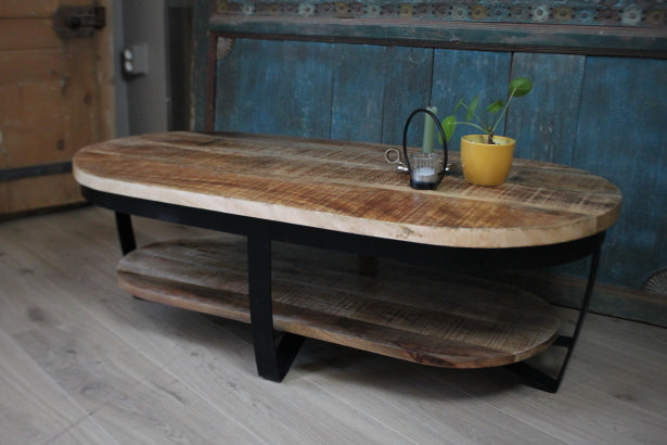 Salontafel ovaal industrieel van mangohout