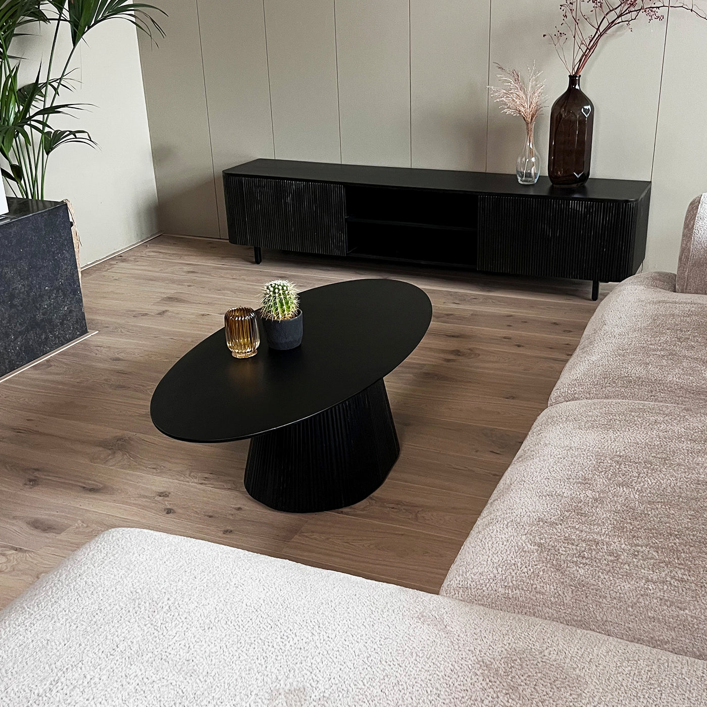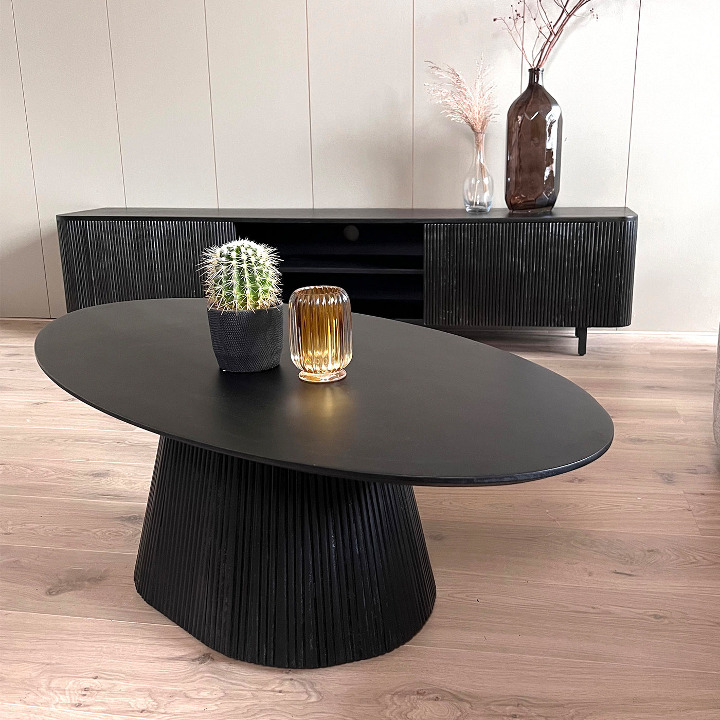 Bent u op zoek naar een stijlvolle salontafel? Kies dan voor onze ovale salontafel Rome. Deze verfijnde salontafel, met zijn elegante ronde vorm, is gemaakt van hoogwaardig mangohout en afgewerkt in een prachtige zwarte kleur. Met een lengte van 120 cm is deze tafel een perfecte eyecatcher voor uw woonkamer, die zowel stijl als functionaliteit toevoegt aan uw interieur.
