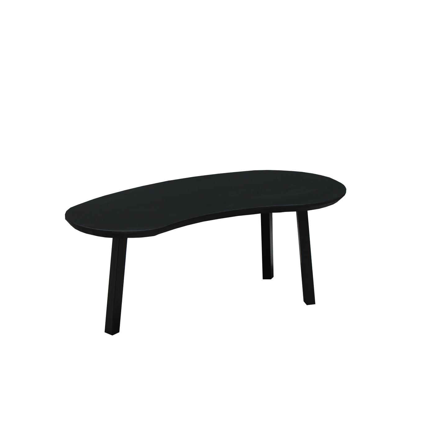 Deze prachtige zwarte salontafel van mangohout is een ware eyecatcher in je interieur. Met zijn unieke, organische vorm brengt hij een speelse en dynamische sfeer in elke kamer. In plaats van de traditionele rechthoekige of ronde tafels, biedt deze salontafel een verfrissend alternatief dat zowel stijlvol als functioneel is.