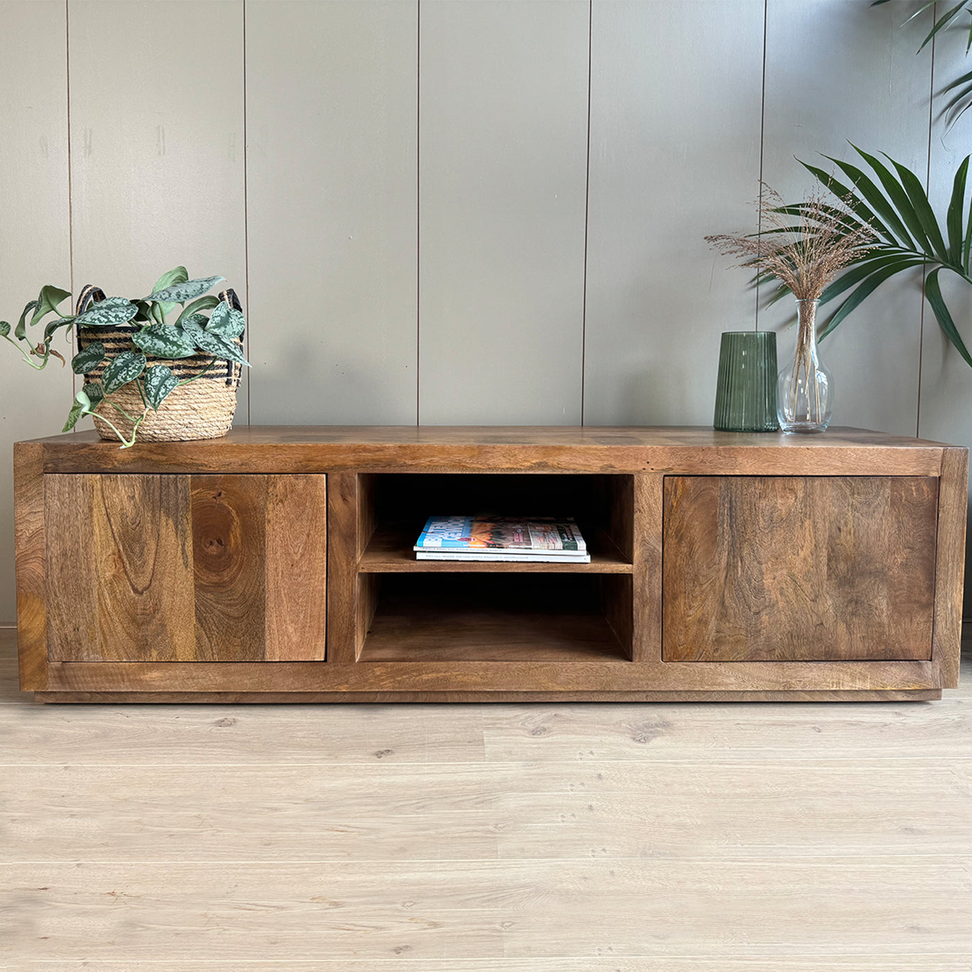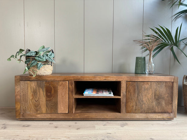 Oslo Tv-meubel gemaakt van mangohout in een bruine lak.