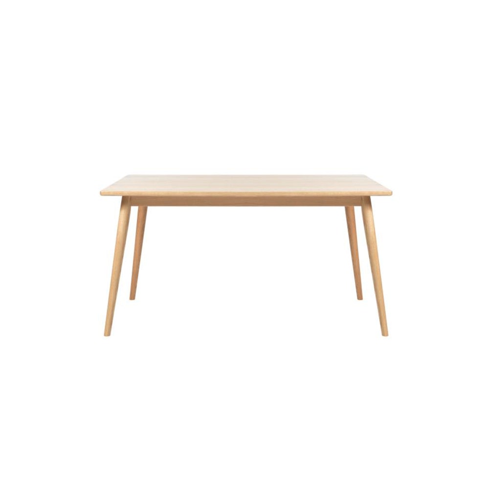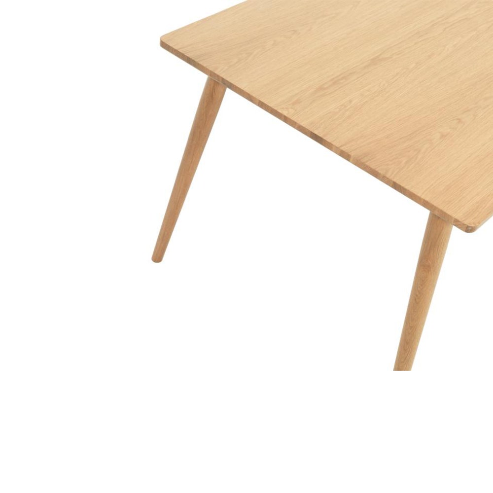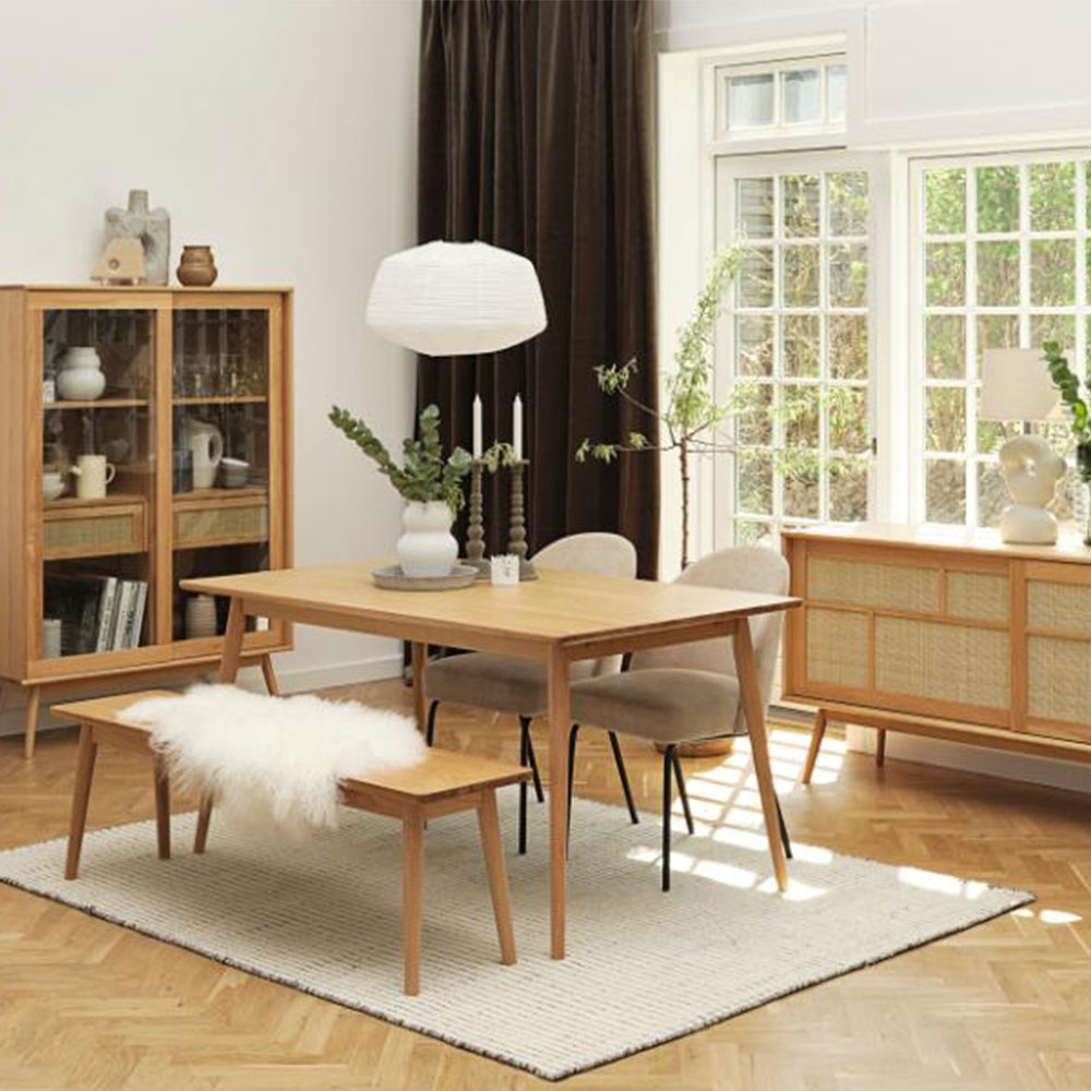 De poten van de eettafel zijn gemaakt van massief eikenhout en het tafelblad is gemaakt van hout met een laag eikenfineer. De schuine poten zorgen ervoor dat de eettafel een retro uitstraling krijgt, en door het natuurlijke materiaal past de Boas tafel helemaal bij een Scandinavische inrichting. De eettafel is met 90 cm te verlengen door aan de zijkanten een verlengstuk te plaatsen. Deze zitten niet bij de tafel inbegrepen en zijn los bij te bestellen. De Boas eettafel is twee verschillende kleuren en afmetingen verkrijgbaar.