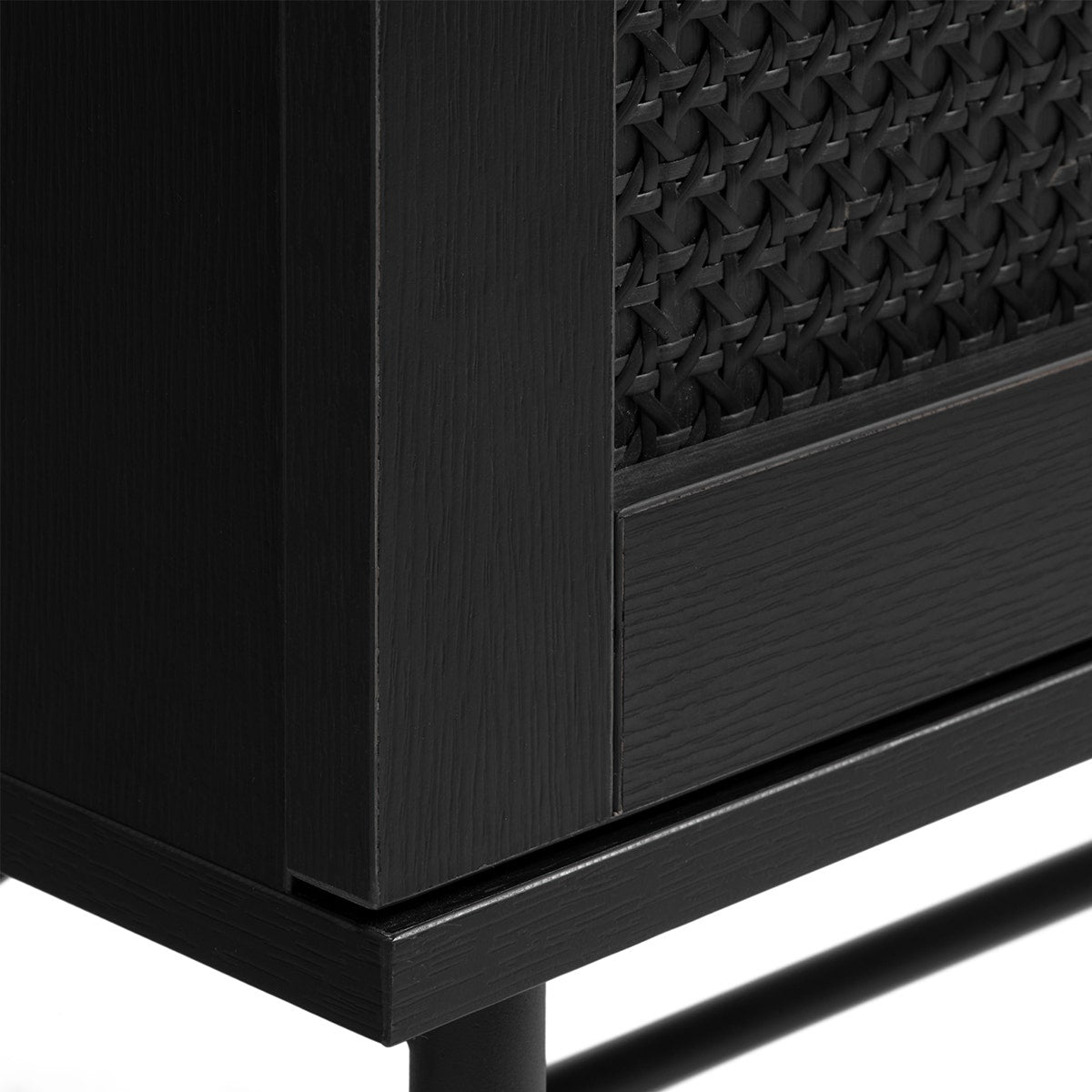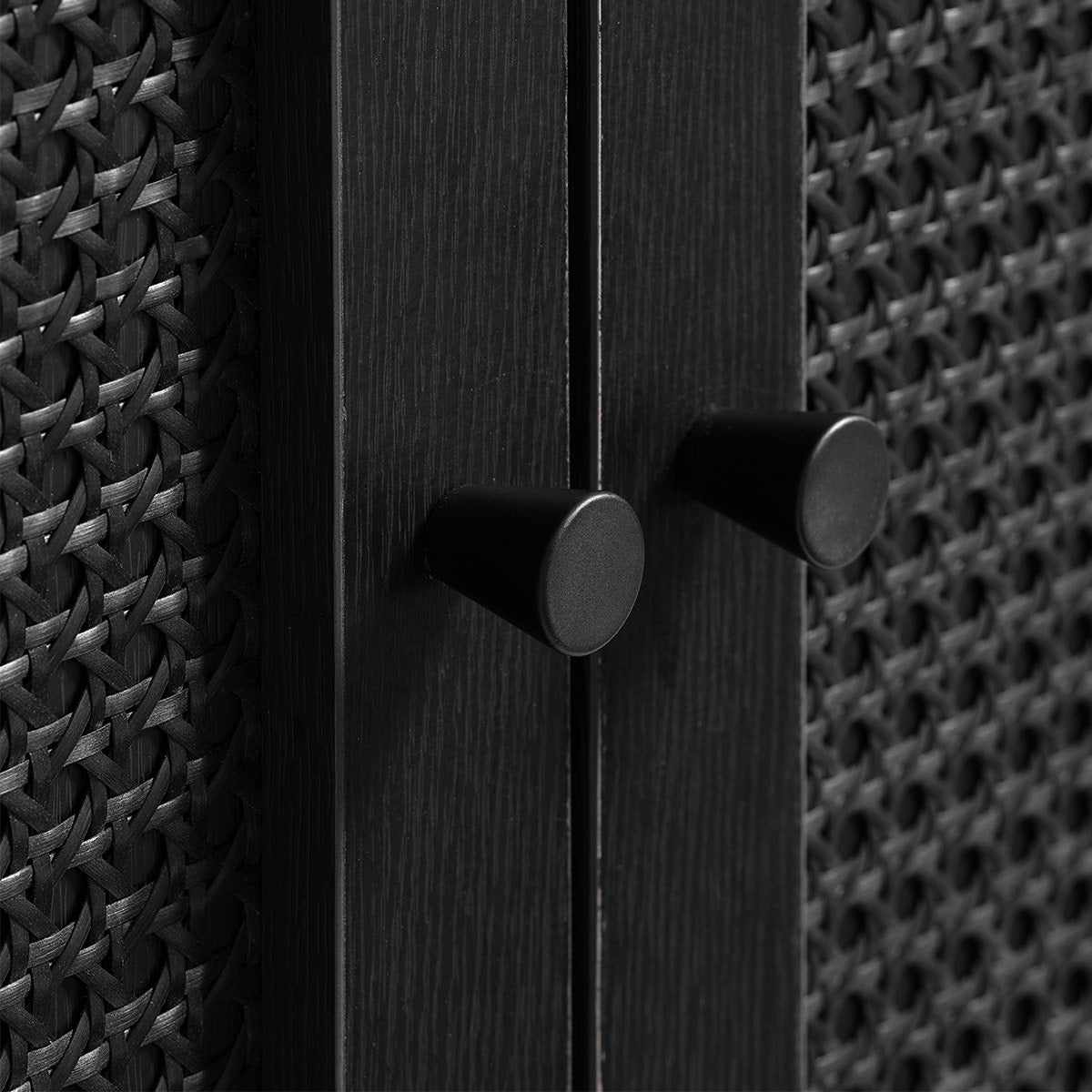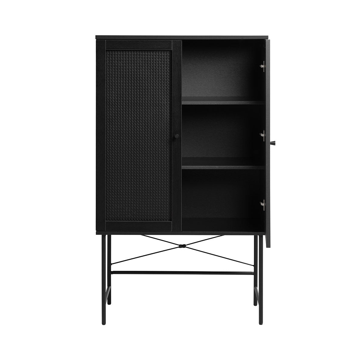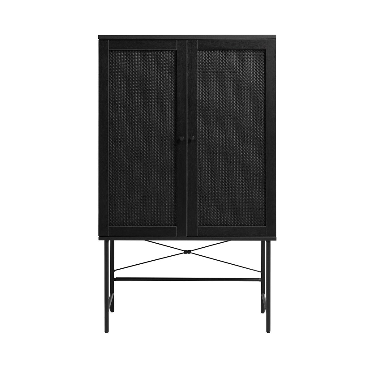 De Jari kast staat op vier slanke metalen poten die aan elkaar zijn verbonden voor extra stevigheid. De kast zelf is gemaakt van hout en de twee openslaande deuren zijn voorzien van kunststof rattan. Deze combinatie van materialen is kenmerkend voor de Jari serie van Olivine en geeft de meubels een industriële uitstraling. Binnenin de opbergkast zitten drie grote vakken waar je al je spullen in kwijt kan. Stijl de kast af met wat leuke accessoires bovenop en je hebt niet alleen een praktisch meubel, maar ook een mooie blikvanger in huis.