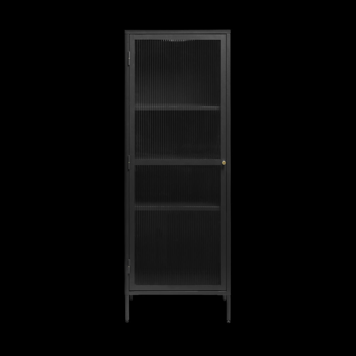 De vitrinekast is gemaakt van metaal en staat op slanke pootjes. De kast heeft een deuren die is voorzien van geribbeld glas. In combinatie met de goudkleurige deurknop geeft dit de kast een trendy uitstraling. De Katja vitrinekast is de ideale keuze als je op zoek bent naar een mooie kast die extra opbergruimte biedt. Aan de binnenzijde zitten vier planken. Vul de planken met al je spullen en zet nog een mooie lamp of plant boven op de kast. De Katja vitrinekast is vier kleuren beschikbaar: groen, rood, blauw en zwart. Daarnaast is de kast ook in verschillende afmetingen verkrijgbaar.
