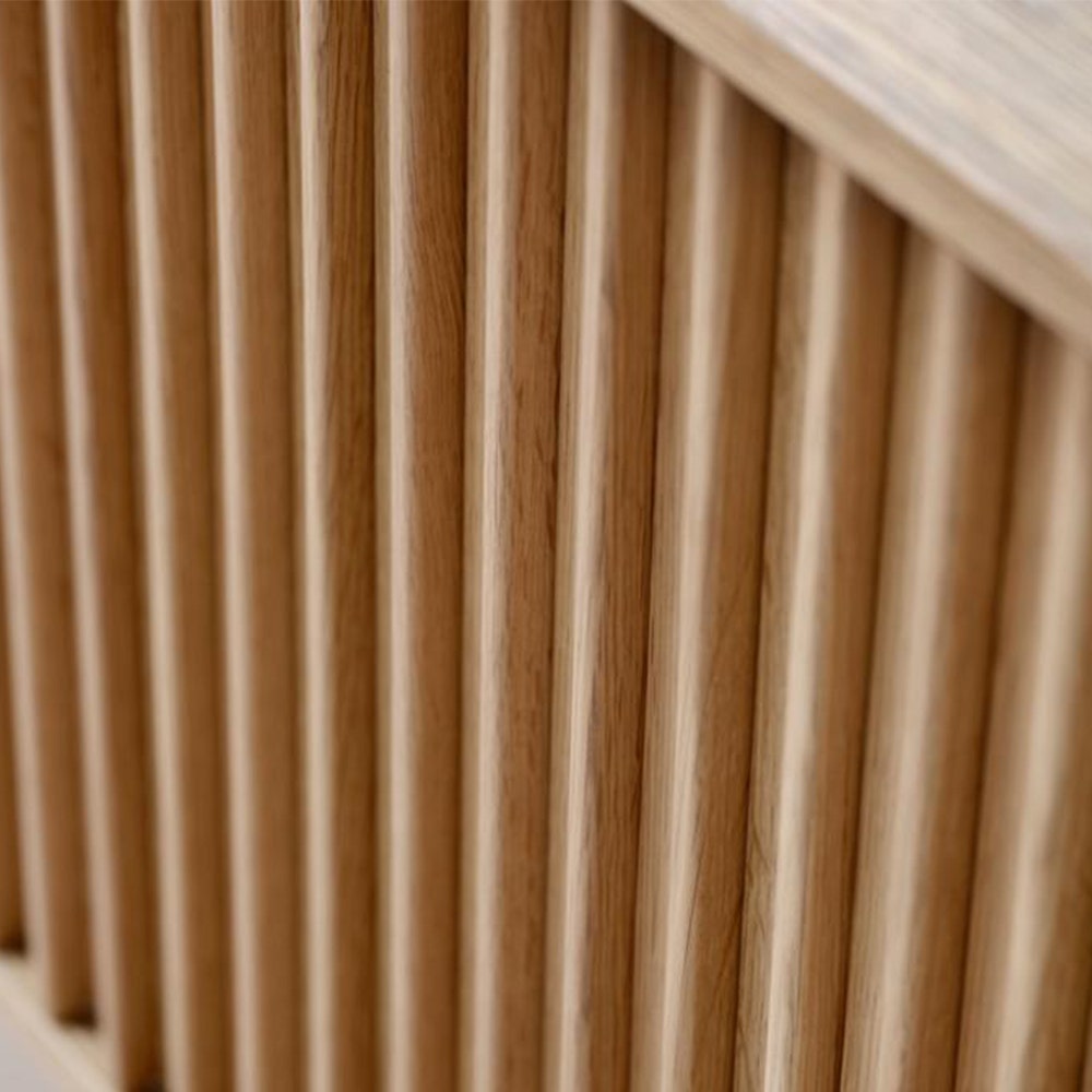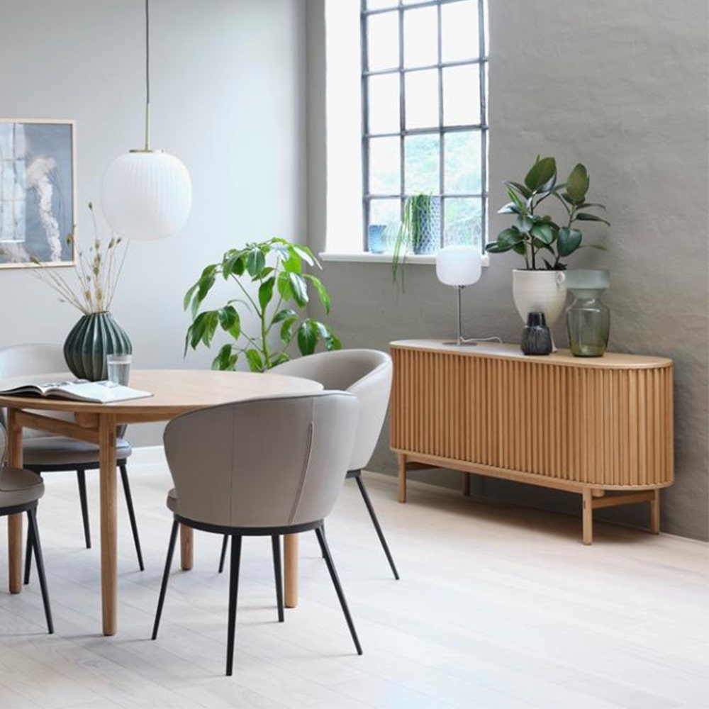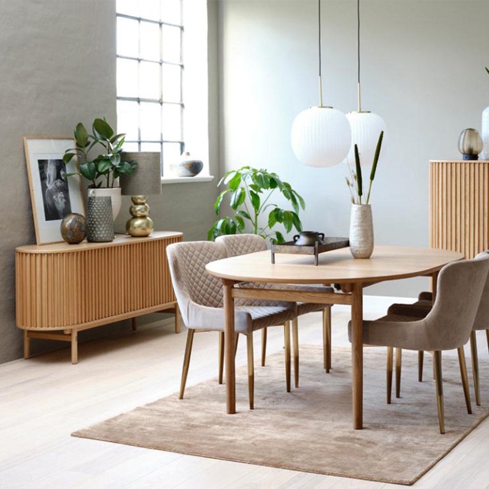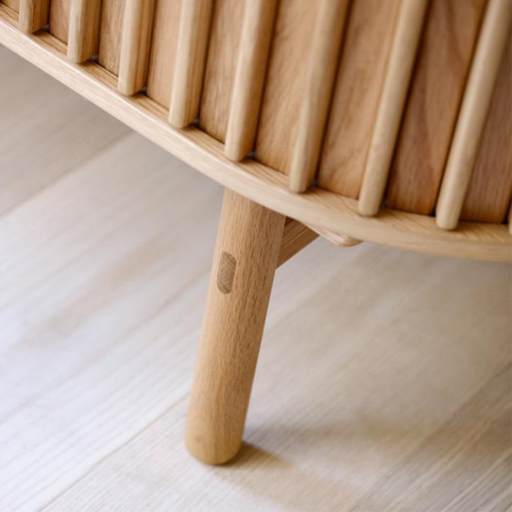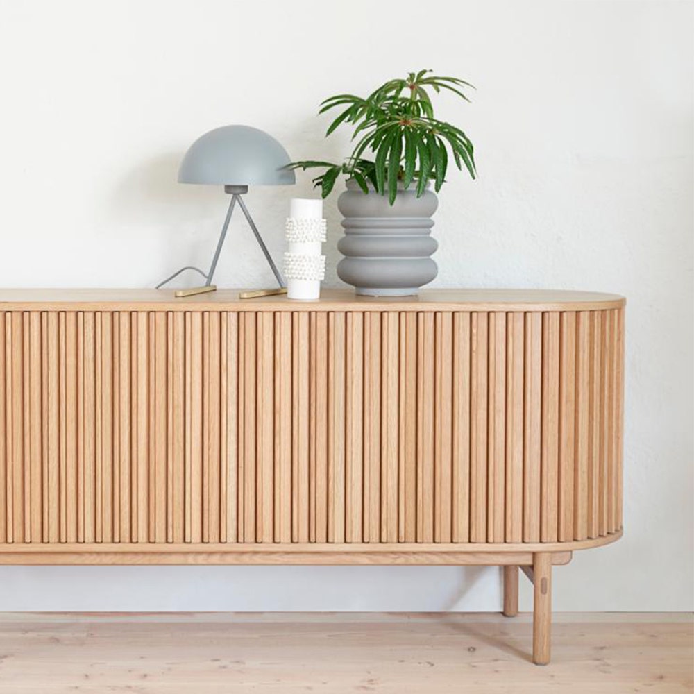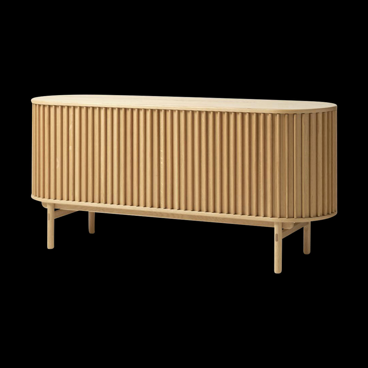 De Kjeld sideboard van Olivine is een ovaal houten dressoir met latjes.