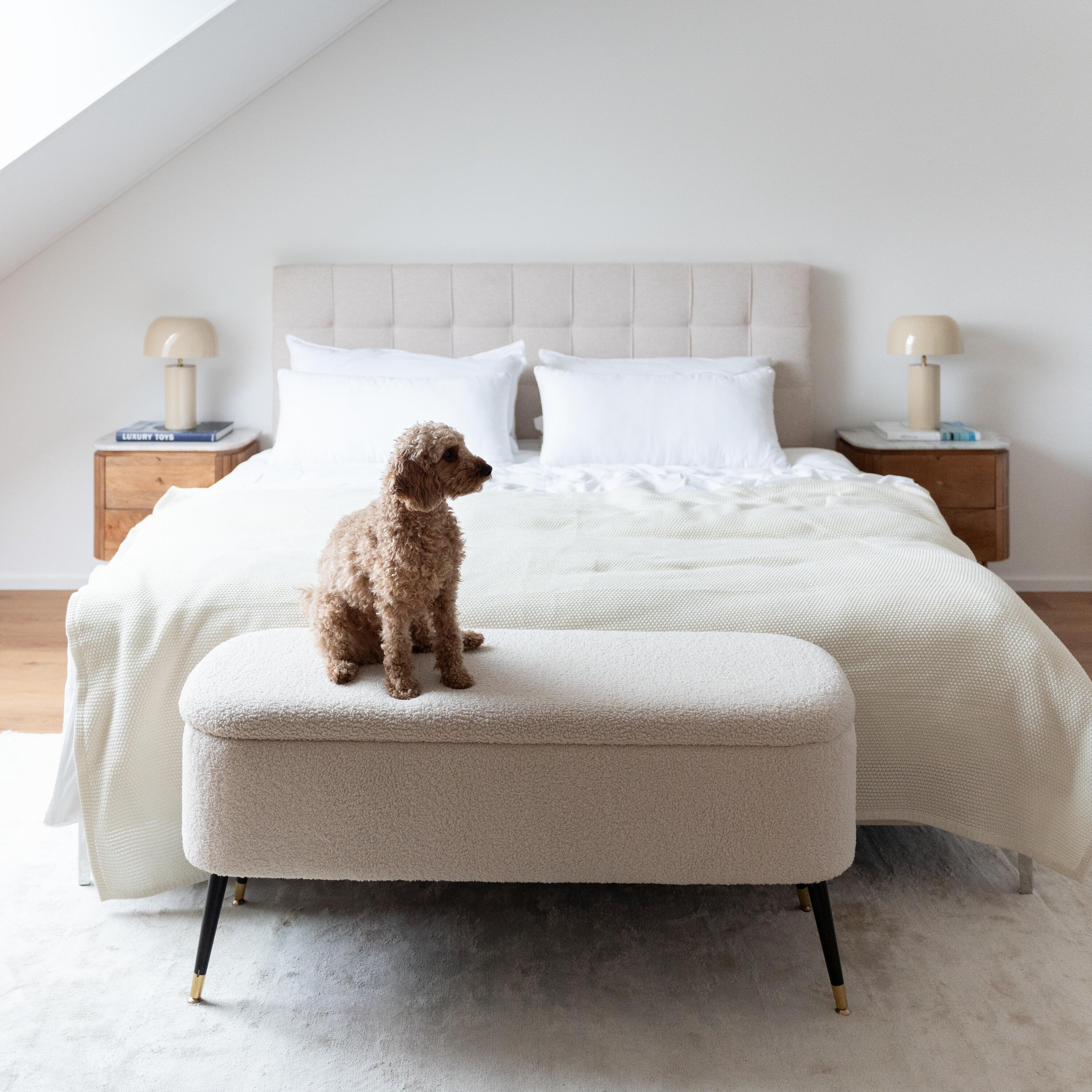 - Bank met opbergruimte Rico White is een elegant en tijdloos meubelstuk dat perfect is voor een iconisch interieur.