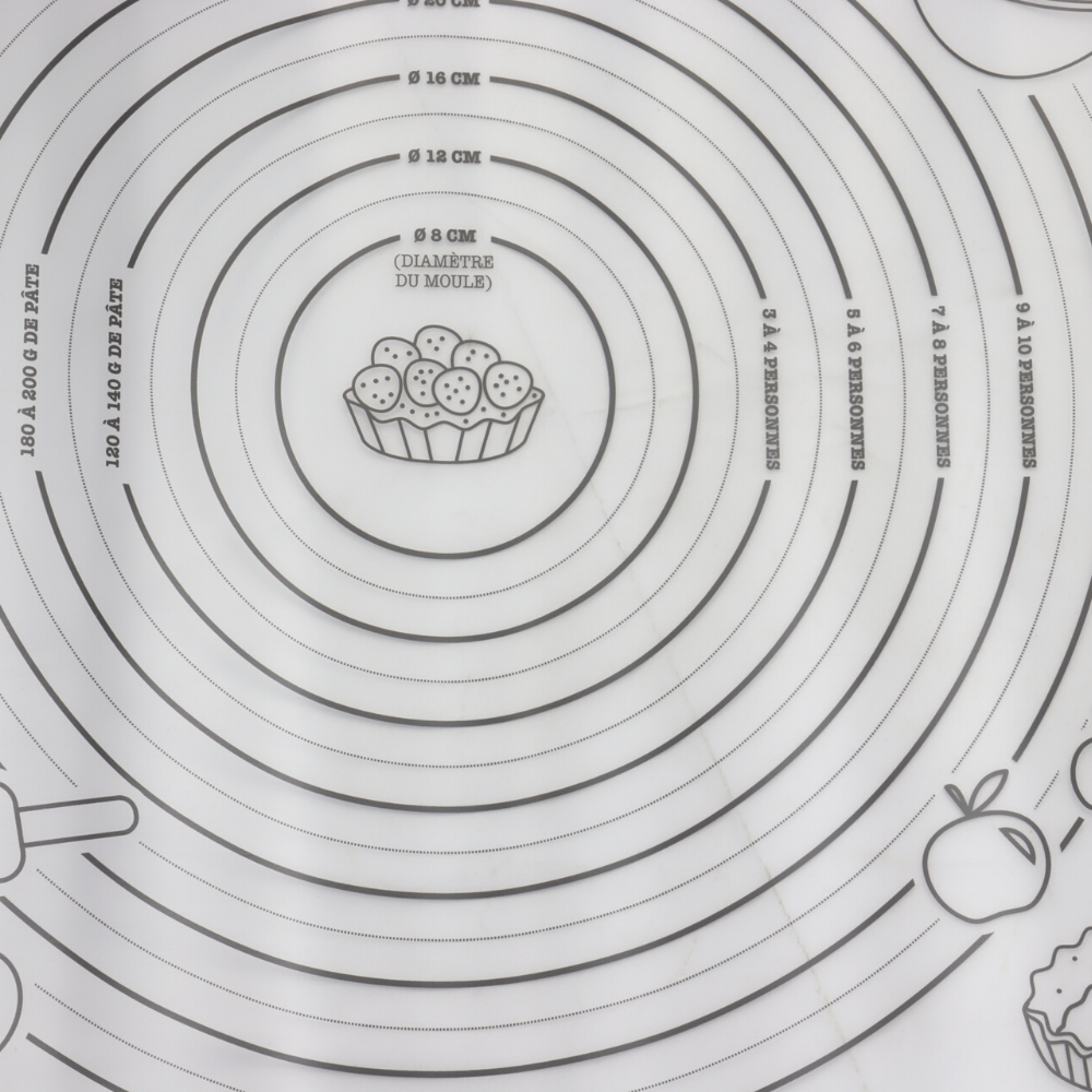 Deze Orange85 bakmat is een handig hulpmiddel in de keuken. De mat is te gebruiken als ondergrond tijdens het bereiden van een baksel. Op deze manier wordt de tafel of keuken niet vies. Op de bakmat staat een referentie van de juiste afmetingen van het baksel. Zo zie je precies bij de hoeveelheid personen welke diameter taart je nodig hebt. Langs de rand is een liniaal te vinden. De mat is gemaakt van siliconen. Dit maakt het hygiënisch werken en het is makkelijk schoon te maken.