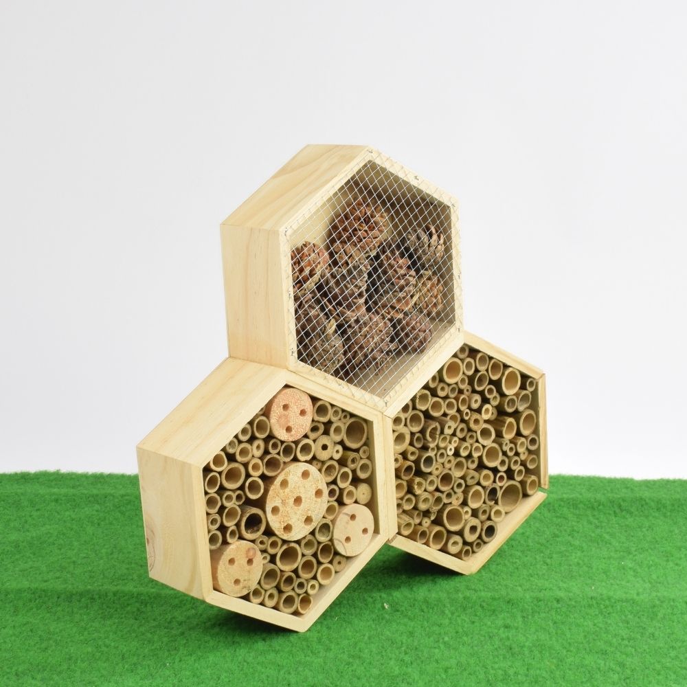 Het Orange85 Insectenhotel Hexagon 35x35x7,5cm is gemakkelijk te bevestigen in de tuin. Met dit hotel lok en bied je onderdak voor veel verschillende insecten. De insecten zorgen vervolgens voor bestuiving van de bloemen en planten in de tuin. Het hotel heeft de vorm van een hexagon en heeft drie verschillende compartimenten.