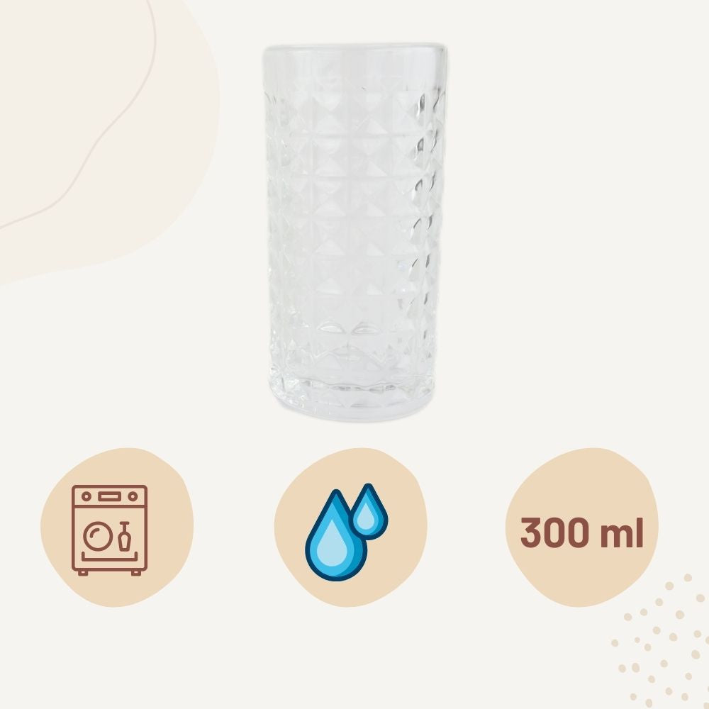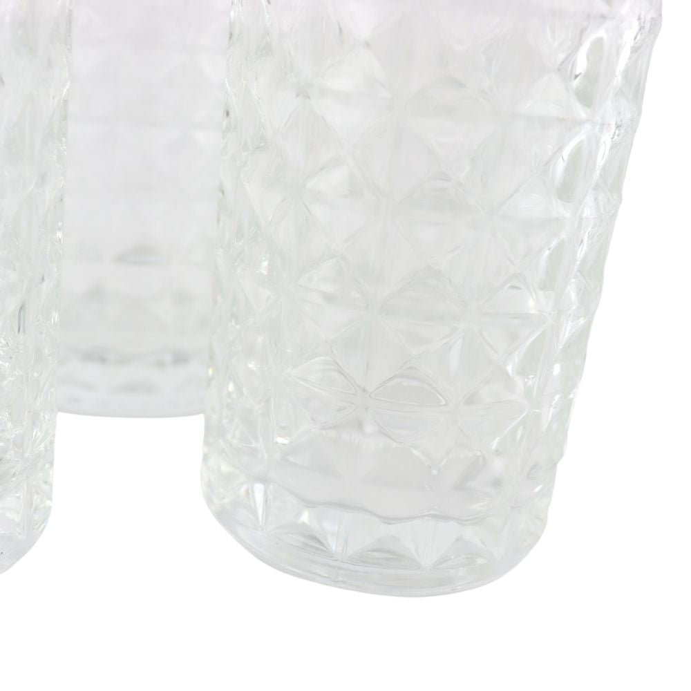 Deze set van Orange85 bestaat uit een karaf en glazen. Het glaswerk heeft een symmetrisch reliëf. De glazen zijn zeer geschikt om te gebruiken als bijvoorbeeld waterglazen of limonadeglazen. De inhoud van een glas is 300 ml. De inhoud van het karaf is 1 liter. In deze set zitten 6 stuks glazen. De producten zijn geschikt voor in de vaatwasser.