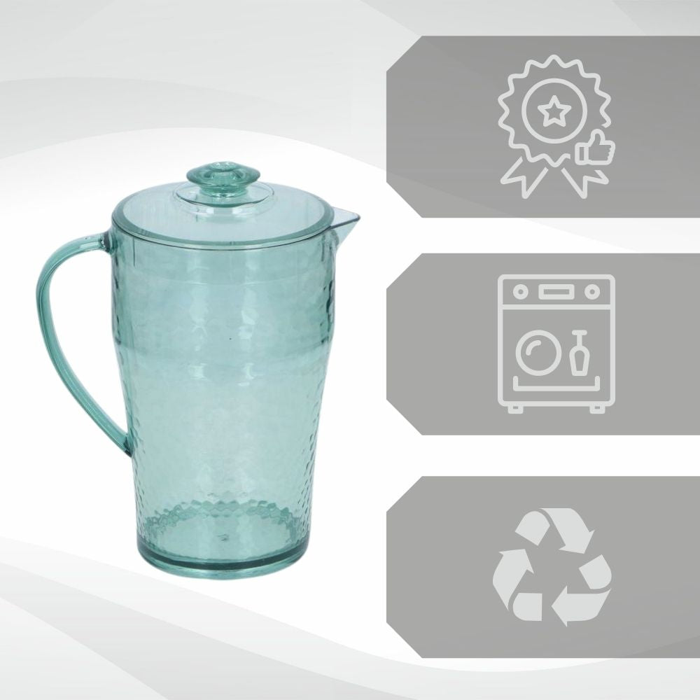 - Plastic schenkkan met gehamerde afwerking en blauwe kleur