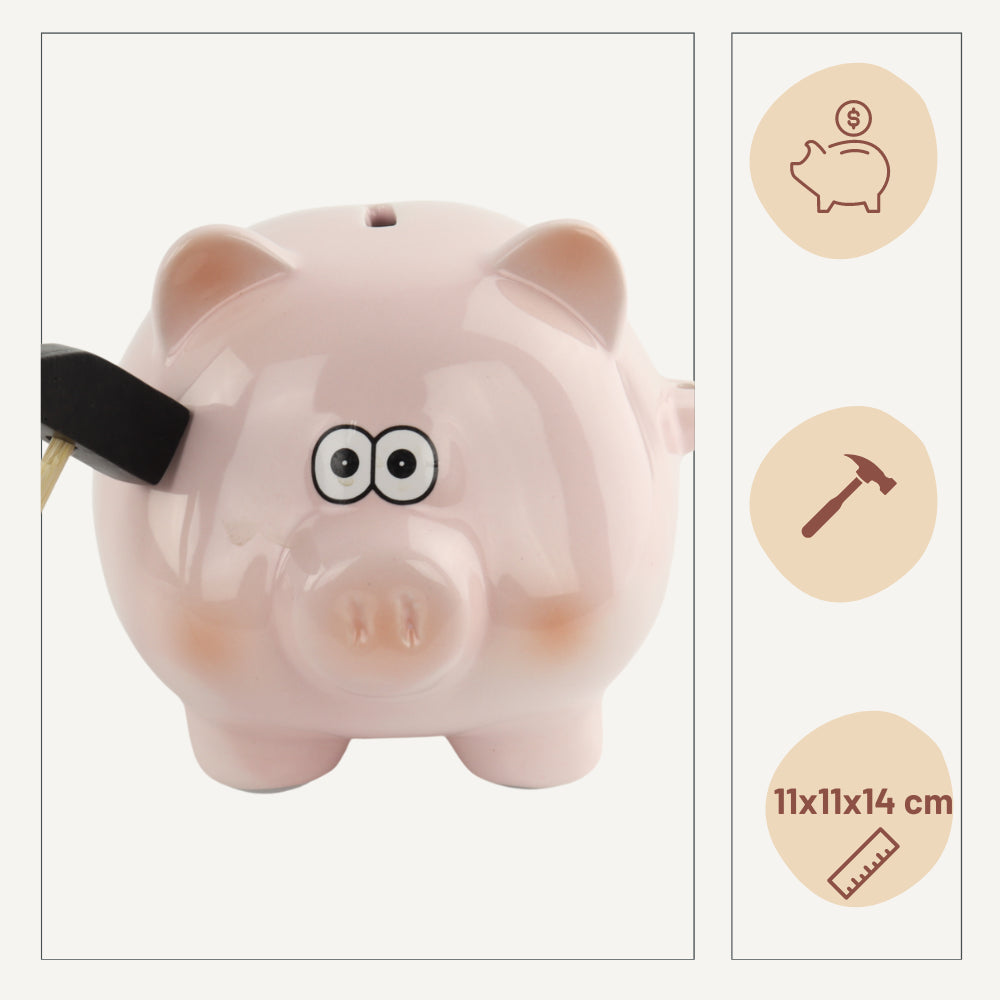 Specificaties van het spaarvarken met hamer: