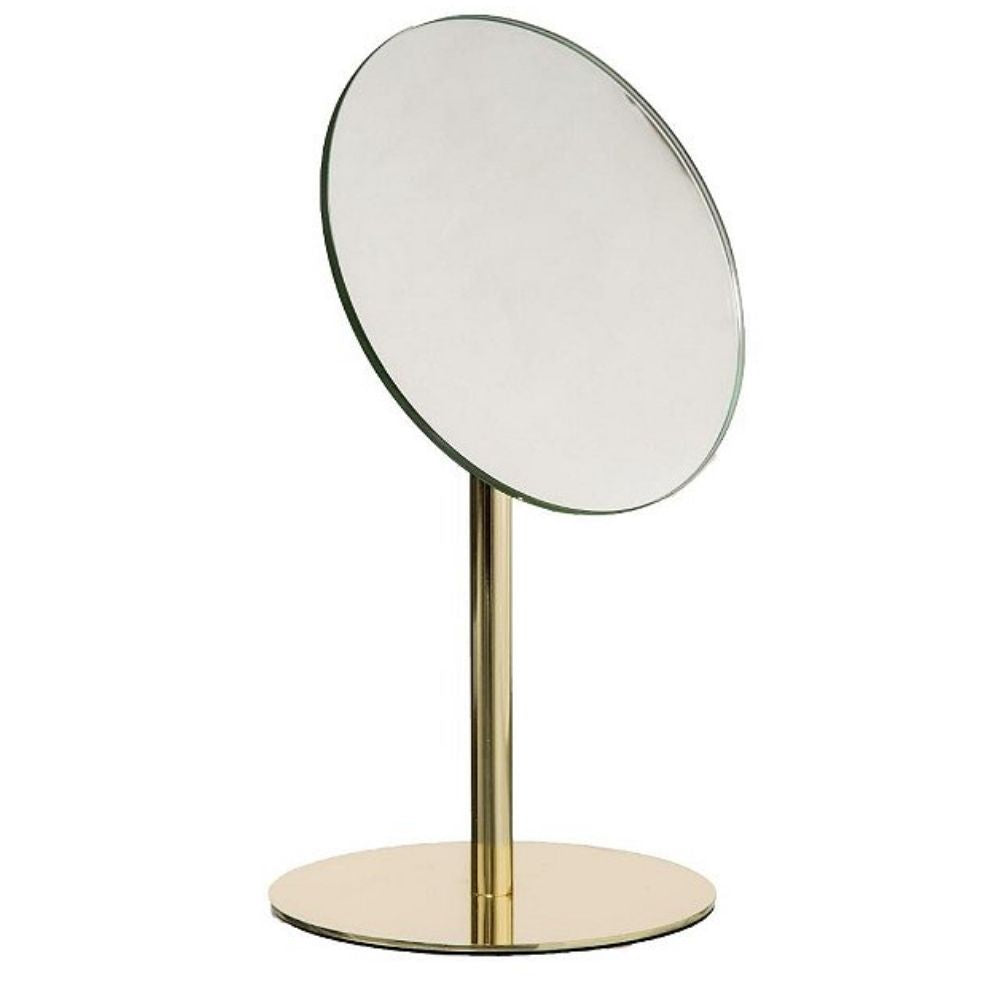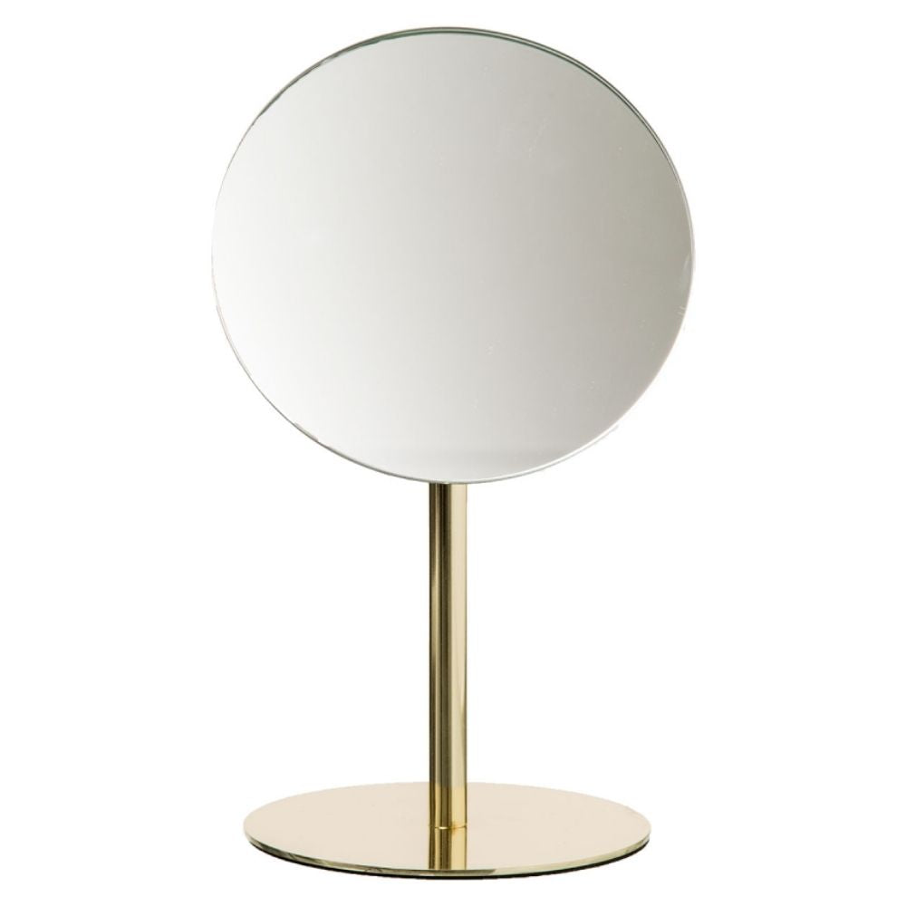 Deze spiegel van Orange85 heeft een gouden kleur. Deze staande spiegel is perfect in de badkamer bijvoorbeeld voor tijdens het opmaken. De spiegel staat op een houder en heeft daarmee een hoogte van 25.5 cm. De spiegel zelf heeft een diameter van 15 cm.