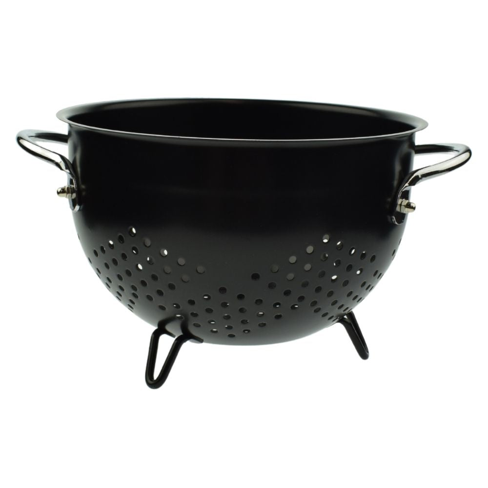 Deze zwarte vergiet van Orange85 helpt je bij het afgieten van eten of het schoonspoelen van bijvoorbeeld sla. De vergiet zwart is gemaakt van hoogwaardig metaal met een zwart gekleurde afwerking. Dit geeft de vergiet een moderne uitstraling. De pootjes geven een extra stevigheid bij het afgieten. Het product heeft een diameter van 20 centimeter en een hoogte van ca. 14 cm.