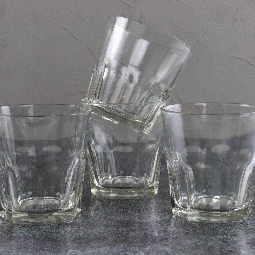 Deze set glazen bestaat uit 4 geharde waterglazen met een inhoud van 250 milliliter. De afmetingen van de glazen zijn 7,5 x 8,5 centimeter. De glazen zijn vaatwasser bestendig.