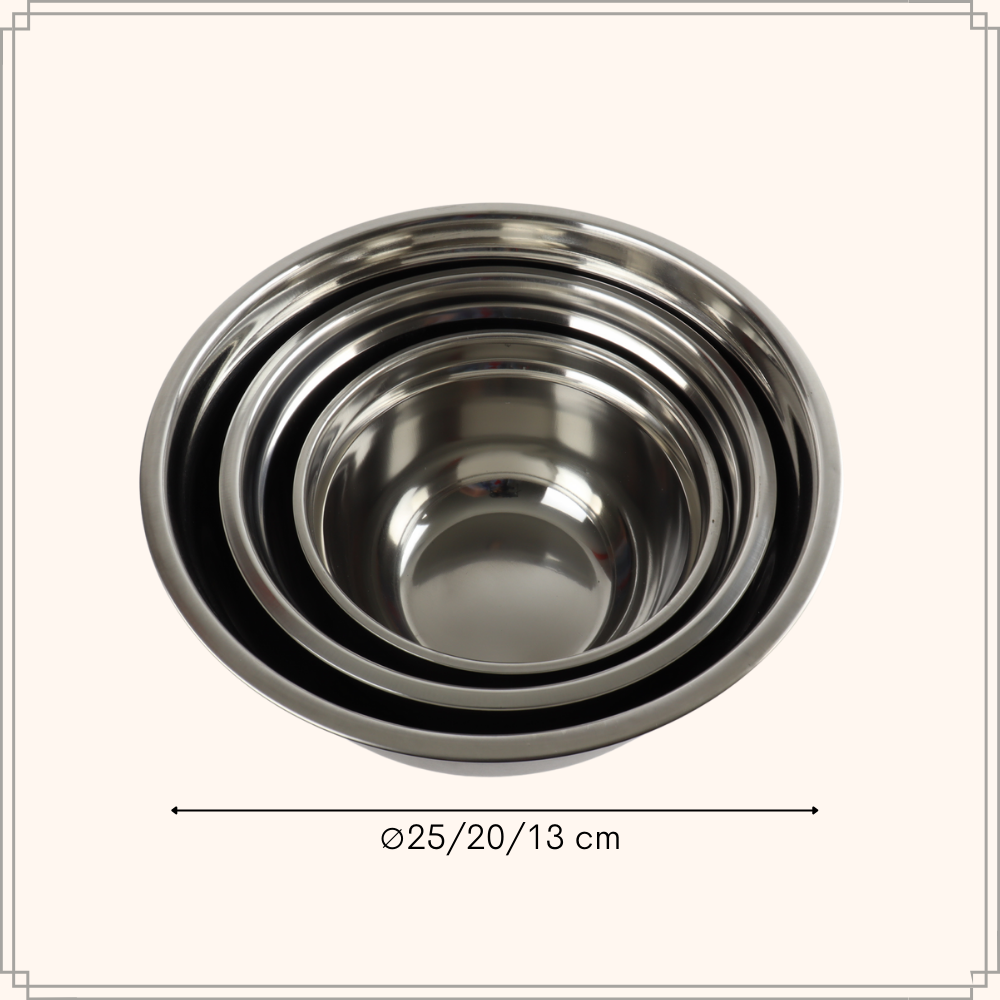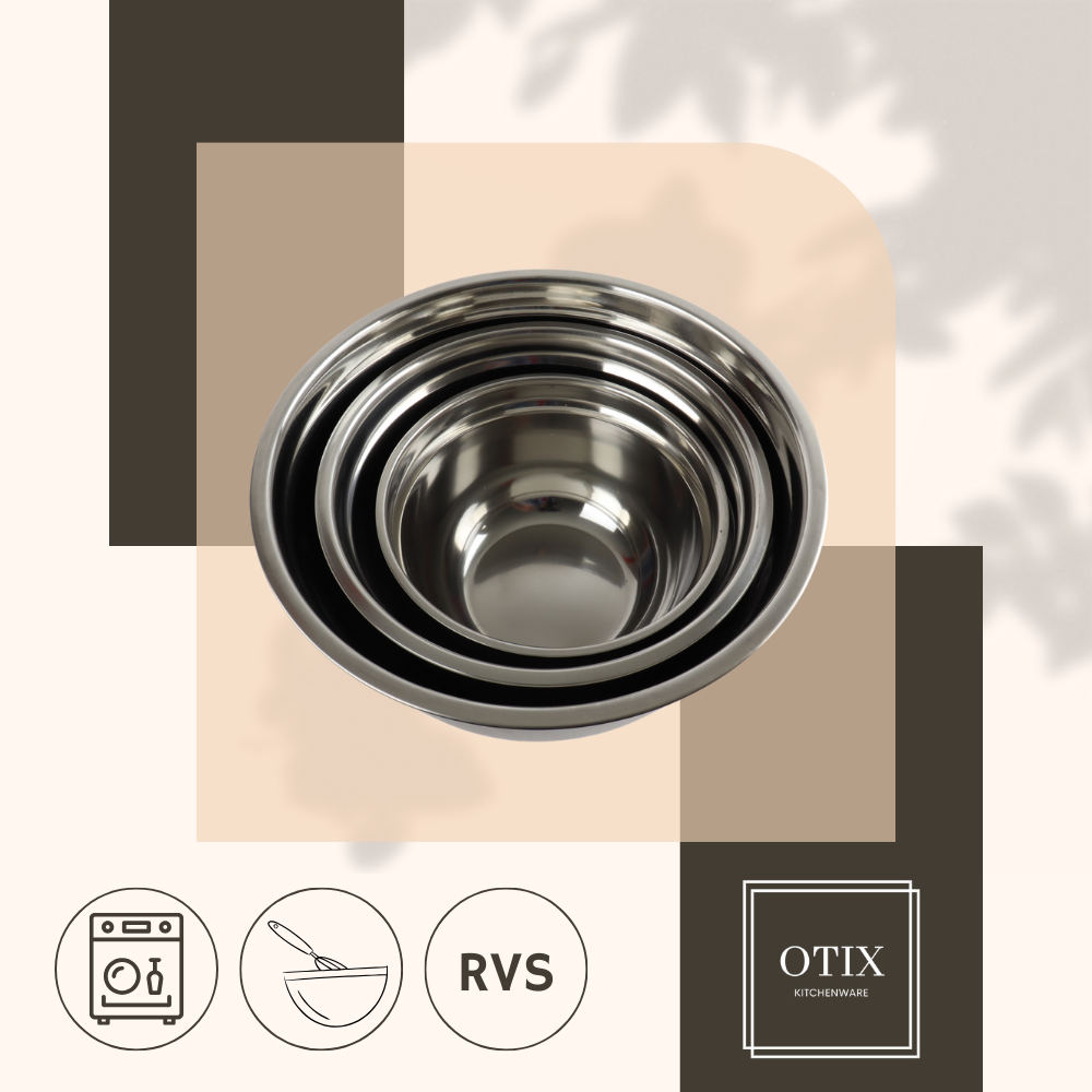 De beslagkommen van OTIX kunnen worden gebruikt voor het bereiden van beslag voor bakken zoals cakes, brood, koekjes en andere gebakken goederen. De 3-delige set bestaat uit 3 RVS kommen met ieder een andere diameter: ⌀25.5 cm - ⌀13 cm - ⌀25.5 cm.