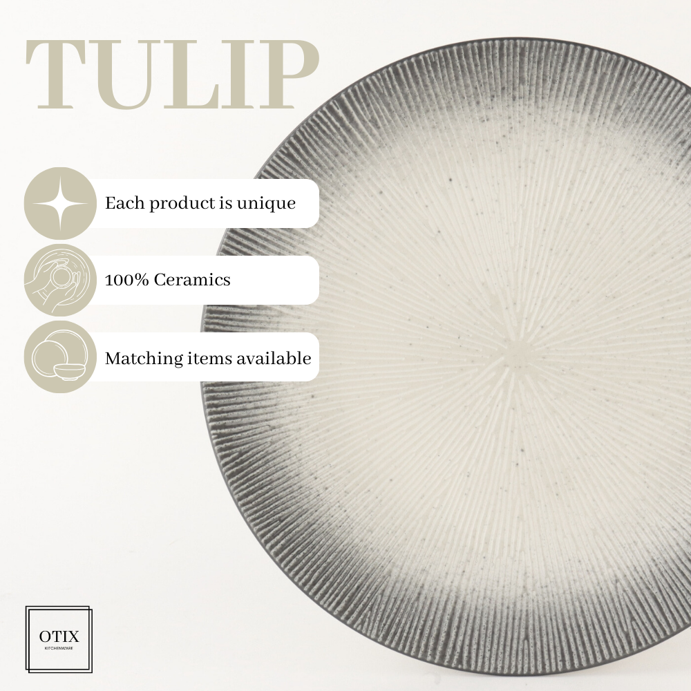 OTIX Diner Bordenset 6 Persoons Zwart Taupe 27cm Keramiek TULIP