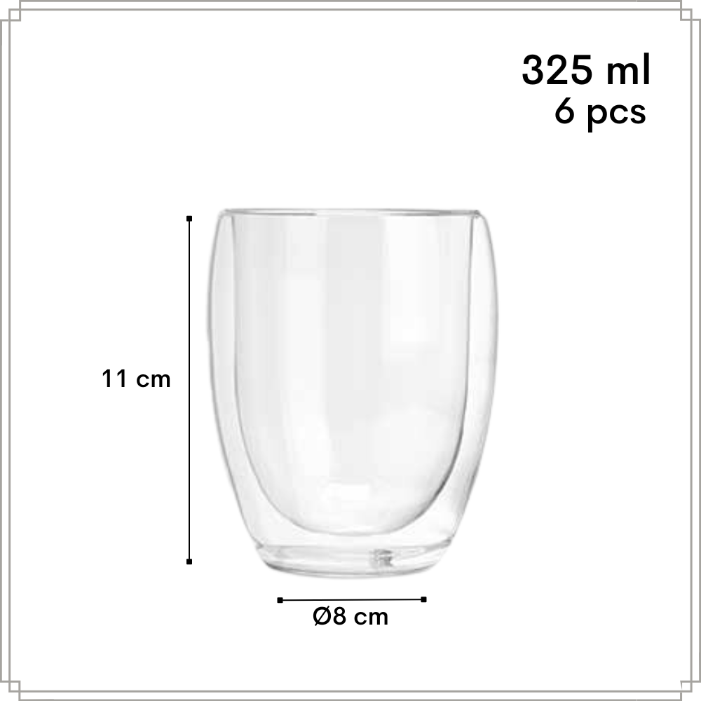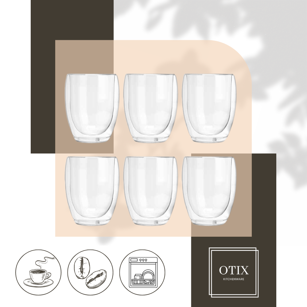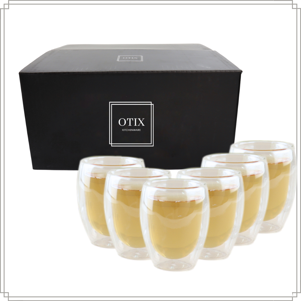 De OTIX koffiekopjes bestaat uit 6 dubbelwandige glazen zonder oor. De koffiekopjes zijn gemaakt van glas. De inhoud van de kopjes is 325 ml en de afmetingen zijn 8 x 8 x 11 centimeter. De koffieglazen zijn vaatwasser bestendig.