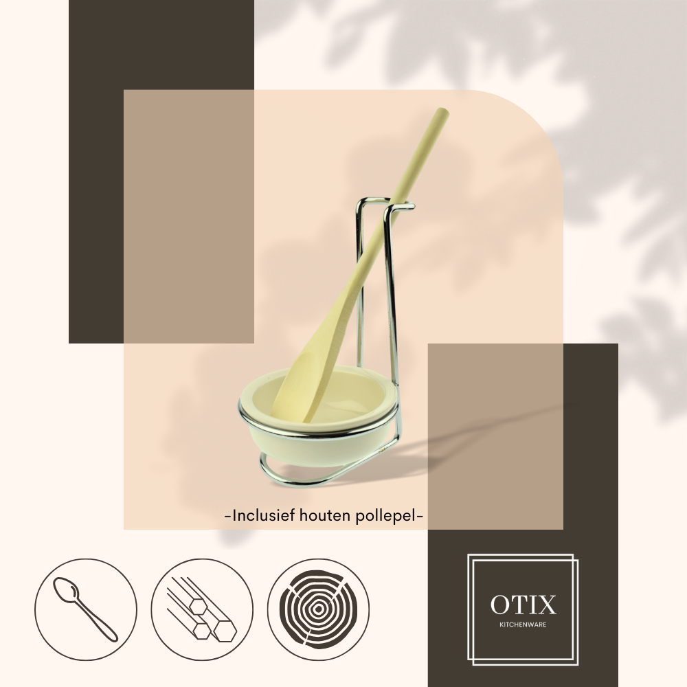 OTIX Lepelhouder Aanrecht met Schaaltje Keramiek RVS Hout