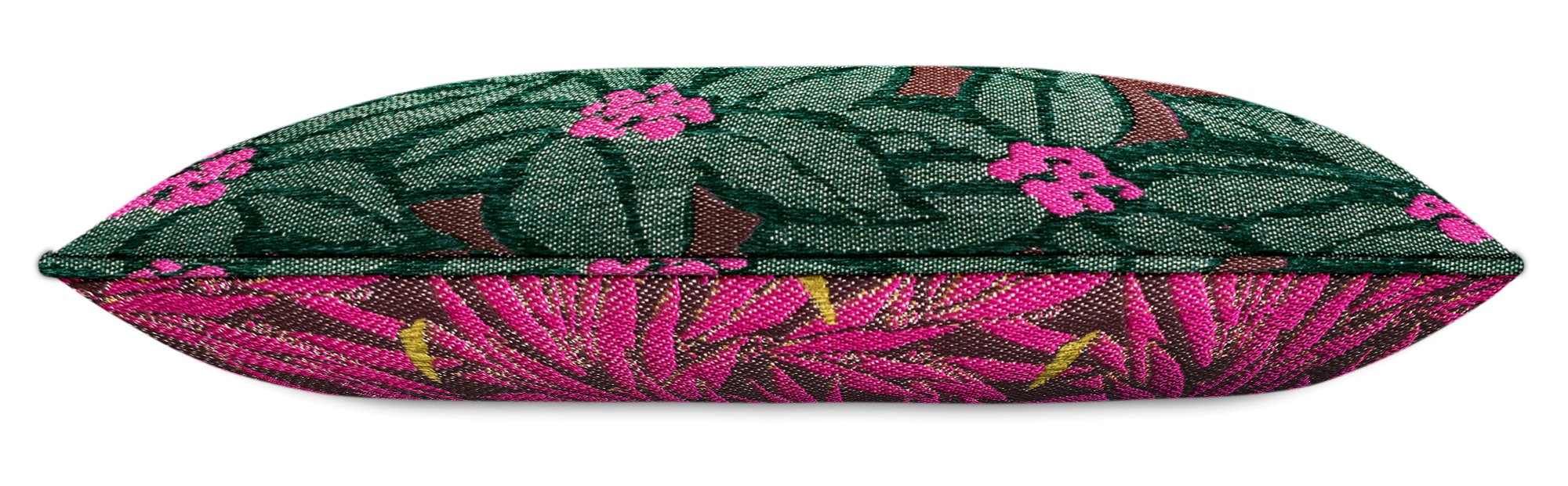Met dit kussen geef je je terras of balkon een boost. Door de combinatie van verschillende prints tover je in een handomdraai een andere sfeer. Onze custom geweven stof heeft een zacht, luxe gevoel en is energiezuinig geproduceerd zonder schadelijke coatings. De kussens kunnen goed tegen zon en regen. Omdat de stof geen chemische coating heeft, neemt deze wel vocht op, maar droogt dan weer gemakkelijk, zonder verkleuring of nare geurtjes. Bij lichte regen kun je je kussens dus prima buiten laten liggen. Als je wilt dat je kussens droog blijven, is het bij een stevige bui wel aan te raden ze binnen te halen.