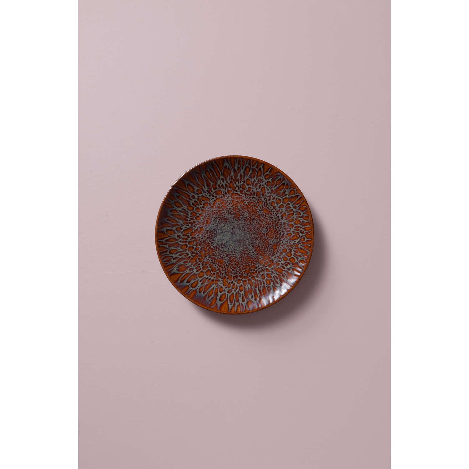 Gemaakt van Portugees stoneware, nodigt Magmatic je ogen direct uit om er beter naar te kijken! Het warm bruine glazuur is gemarmerd met een gouden patroon, wat elk bord of schaal uniek maakt.