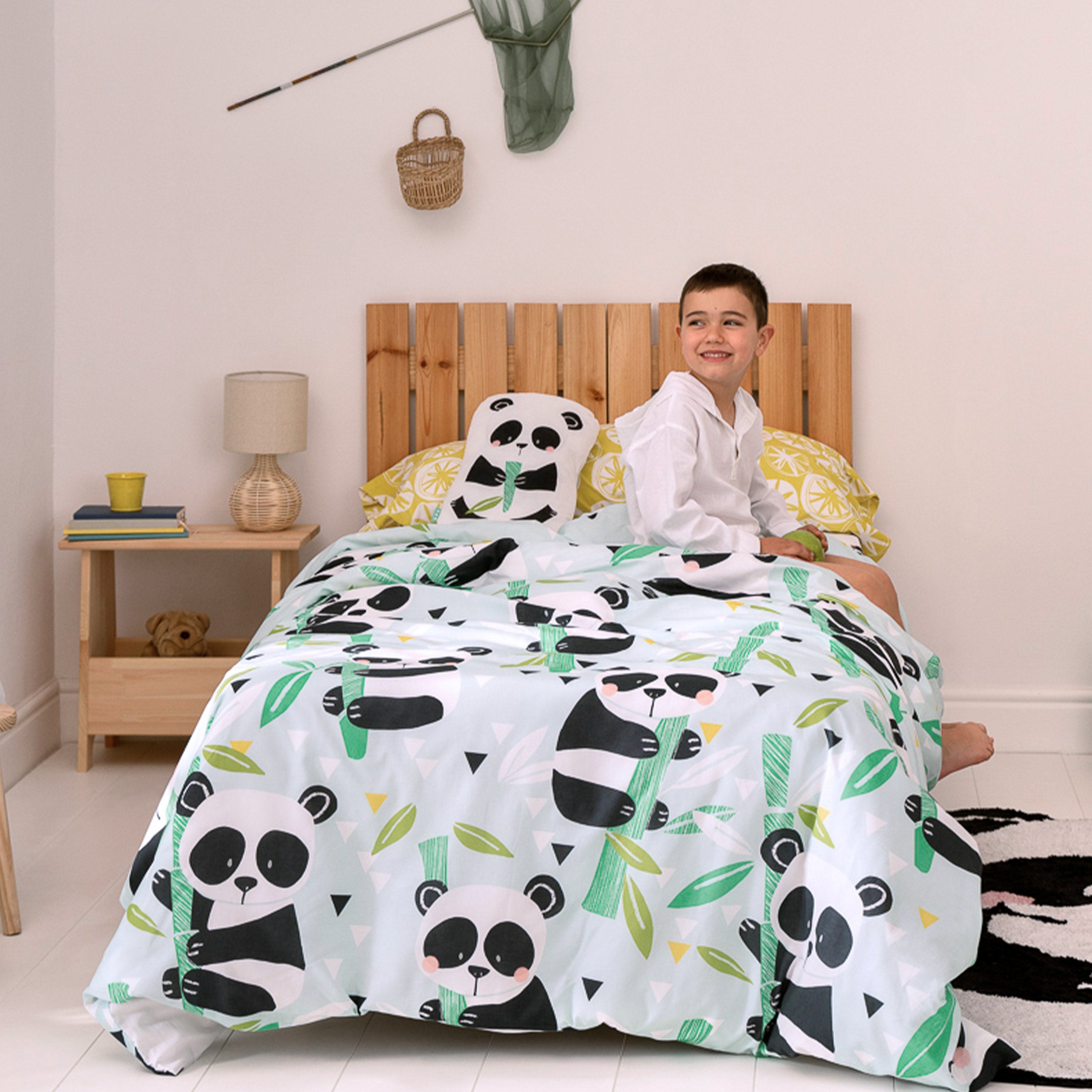 De PANDA GARDEN BLUE dekbedovertrekset is perfect om een vleugje plezier en fantasie toe te voegen aan de slaapkamer van de kleintjes, waardoor elke nacht magisch en speciaal wordt en hun dromen net zo zoet als deze schattige panda's! Gemaakt van zachte en stevige materialen zoals natuurlijk katoen, garandeert het comfort en duurzaamheid voor het hele seizoen. Ideaal om te combineren met andere items in hetzelfde design, zoals het pandabeer kussen, het pandabeer print kussen en nog veel meer! Bedlinnen niet inbegrepen.
