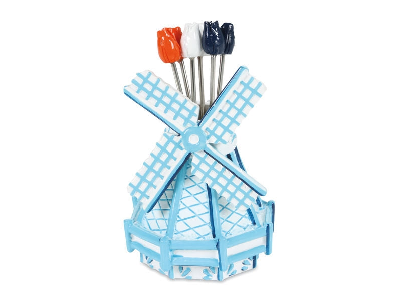 Dat is koren op de molen voor iedereen. Oer-Hollandse kaasprikkers in de vorm van rood wit blauwe tulpen. Voeg daar een houder in de vorm van een Delfts Blauwe molen aan toe en het tafereel is compleet. De Party Prikker Set Molen van BOSKA laat je natuurlijk graag op jouw tafel prijken of geef je als bijzonder souvenir aan je gasten. Lekkere kazen en hapjes prikken in stijl. Zet deze blikvanger in het zicht en het zorgt voor een glimlach bij alle aanwezigen. Traditie, sfeer en smaak komen bij elkaar in deze set. Als iedereen uitgeprikt is en alle prikkers weer in de Party Prikker Set Molen staan, kan het zo de vaat in. Ze zijn namelijk vaatwasserbestendig. Zo gaat deze prikkerset van BOSKA nog jaren mee. Compleet geleverd met een stevige garantie van 10 jaar erbij. Heel leuk voor thuis, maar zeker ook als cadeau of relatiegeschenk. Kwaliteit, fun en gezelligheid voor een ‘prikkie’.
