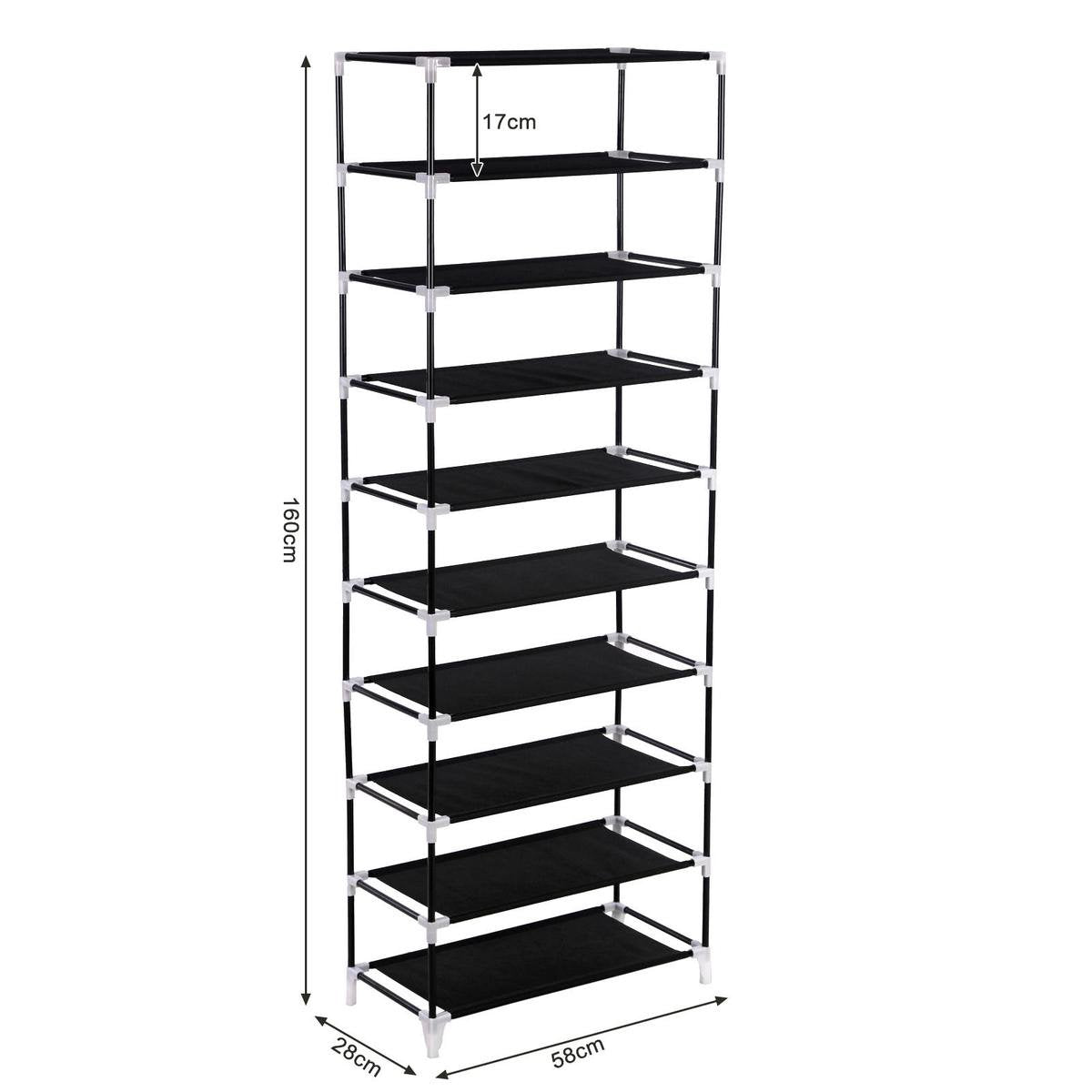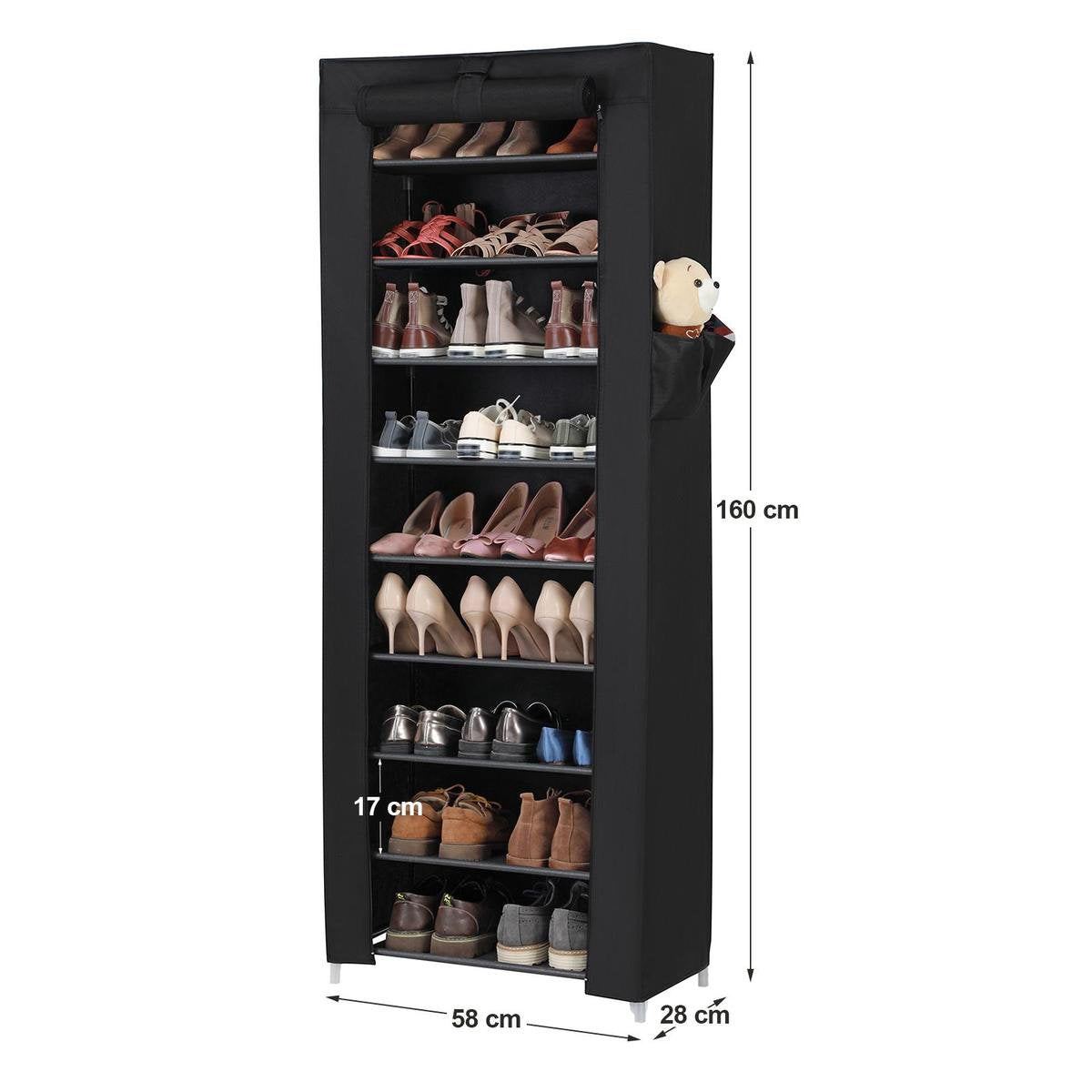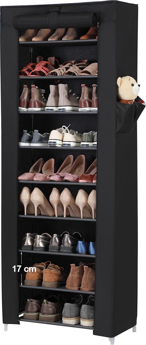 - Licht maar stevig: dit schoenenrek is gemaakt van kwalitatieve materialen. Het geraamte is van roestvrij staal en de hoes is vochtwerend en ademend.