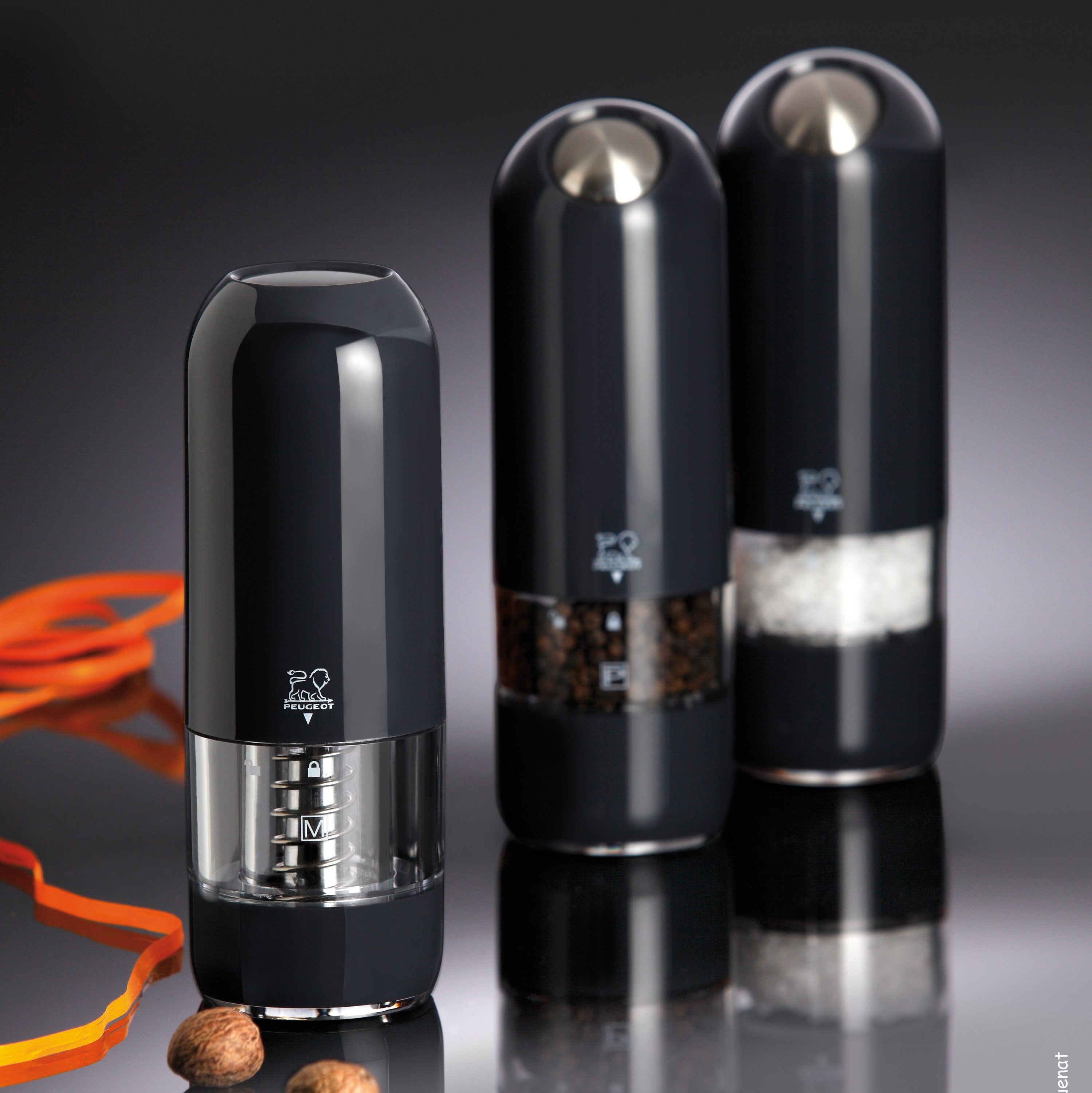 Elektrische molens Naast de molens met het originele maalwerk, heeft Peugeot ook een breed aanbod van elektrische zout- en pepermolens. Met deze handige molens heb je met één druk op de knop vers zout of peper om de gerechten goed op smaak te maken. De Peugeot elektrische molens zijn voorzien van een zeer sterke motor die lang mee zal gaan. Deze motor werkt op batterijen. De batterijen worden meegeleverd met de molens.
