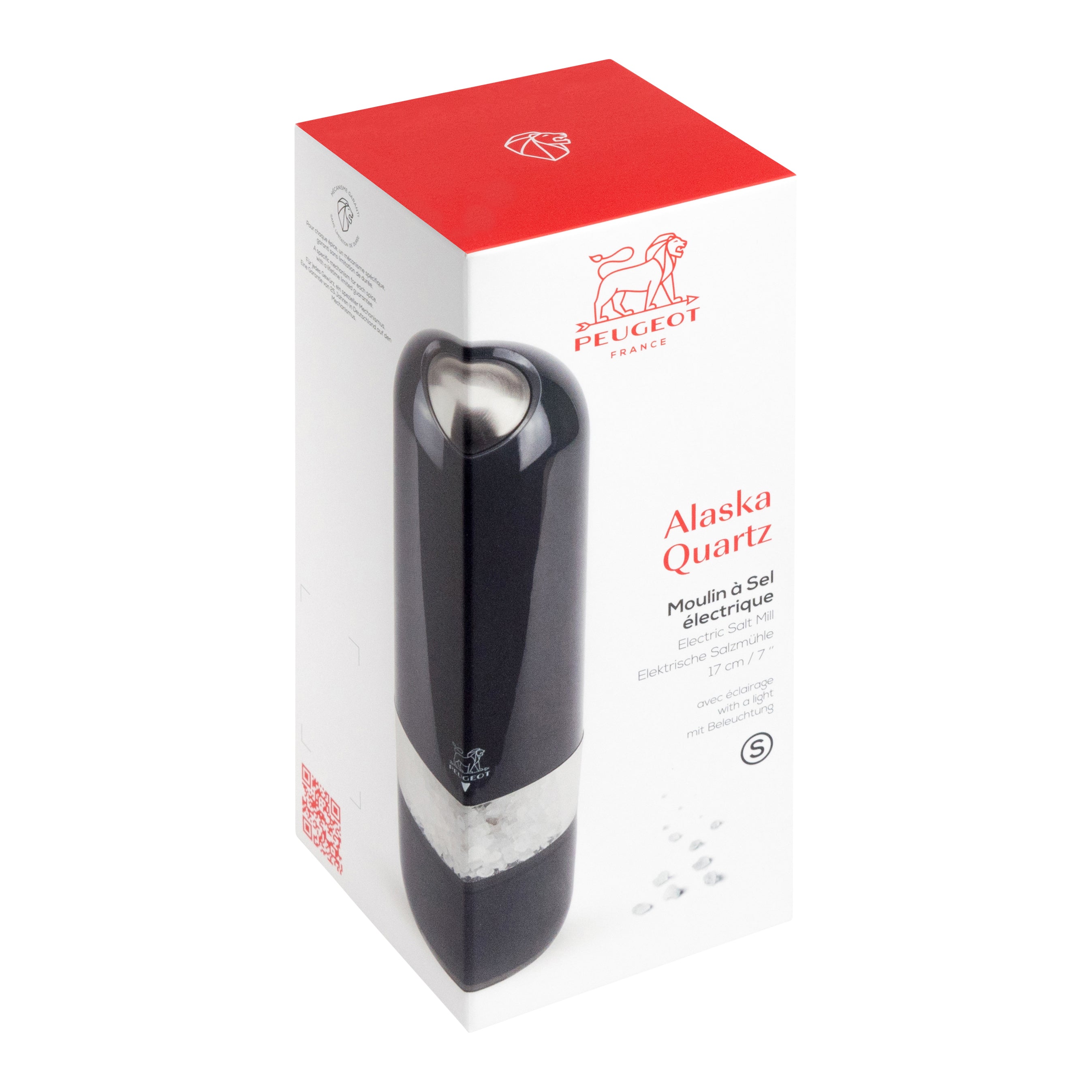 Peugeot Alaska peper- en zoutmolens De Alaska molens van Peugeot hebben een moderne uitstraling met een kunststof basis en een acryl rand. Door de acryl rand kan je perfect zien hoeveel peper of zout er nog in de molen zit. Er brandt een rood lampje onderaan de molen als hij maalt. Zo kan in de gaten gehouden worden hoeveel peper of zout er is toegevoegd aan het eten. Er zit een levenslange garantie op het maalwerk van de molen en op de basis van de molens zit een garantie van 2 jaar. De molens zijn niet vaatwasmachinebestendig.