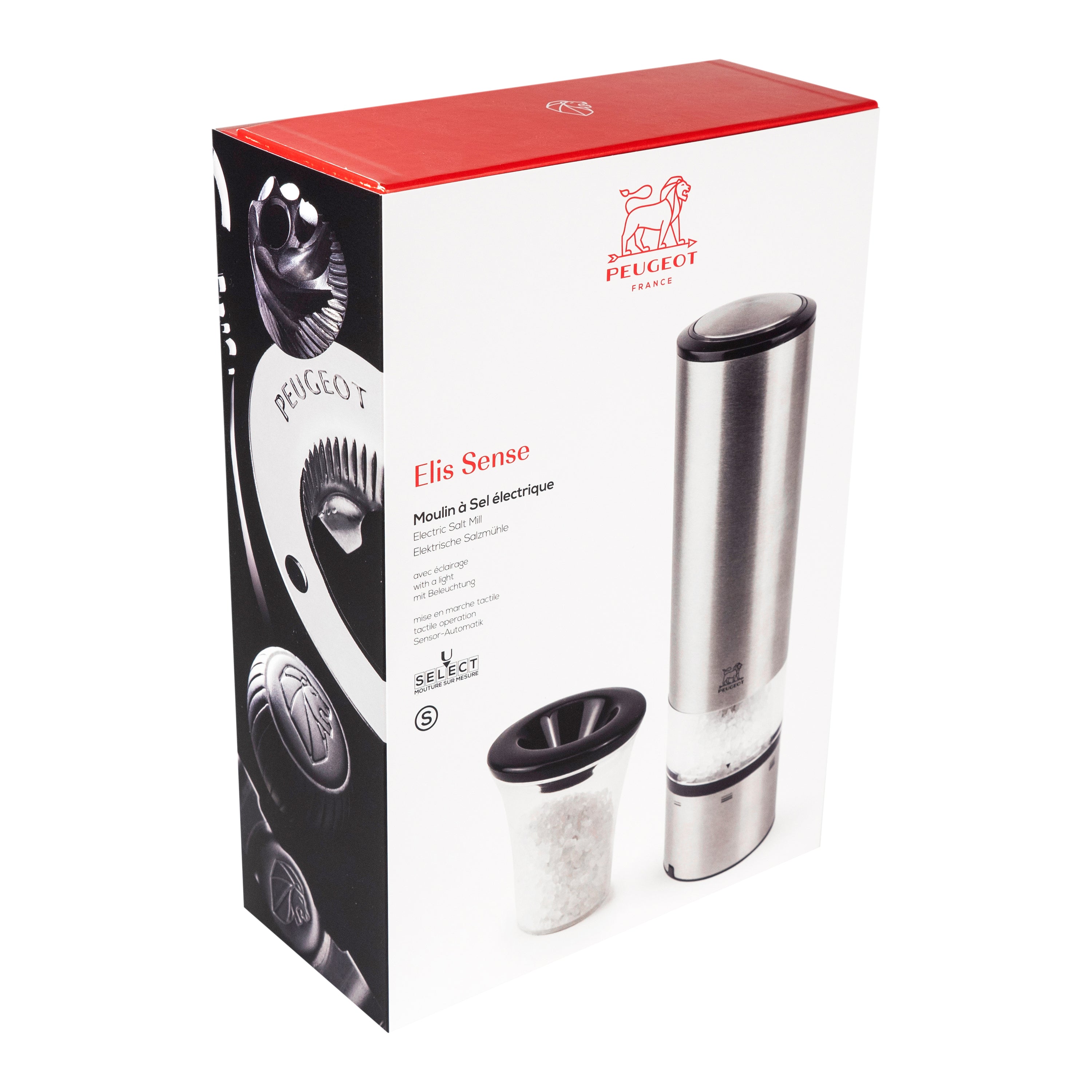 Peugeot Elis Sense Elektrische peper- en zoutmolens De Elis sense elektrische zout- en pepermolen zijn vervaardigd uit sterk, mat geborsteld RVS en hebben een strak, eigentijds design. De molens zijn elektrisch waardoor ze makkelijk met één hand te bedienen zijn. Door de gladde vormgeving ligt de Elis sense prettig in de hand en is hij makkelijk bij te vullen. Door de acryl rand kan je altijd goed zien hoeveel peper of zout er nog in de molen zit.