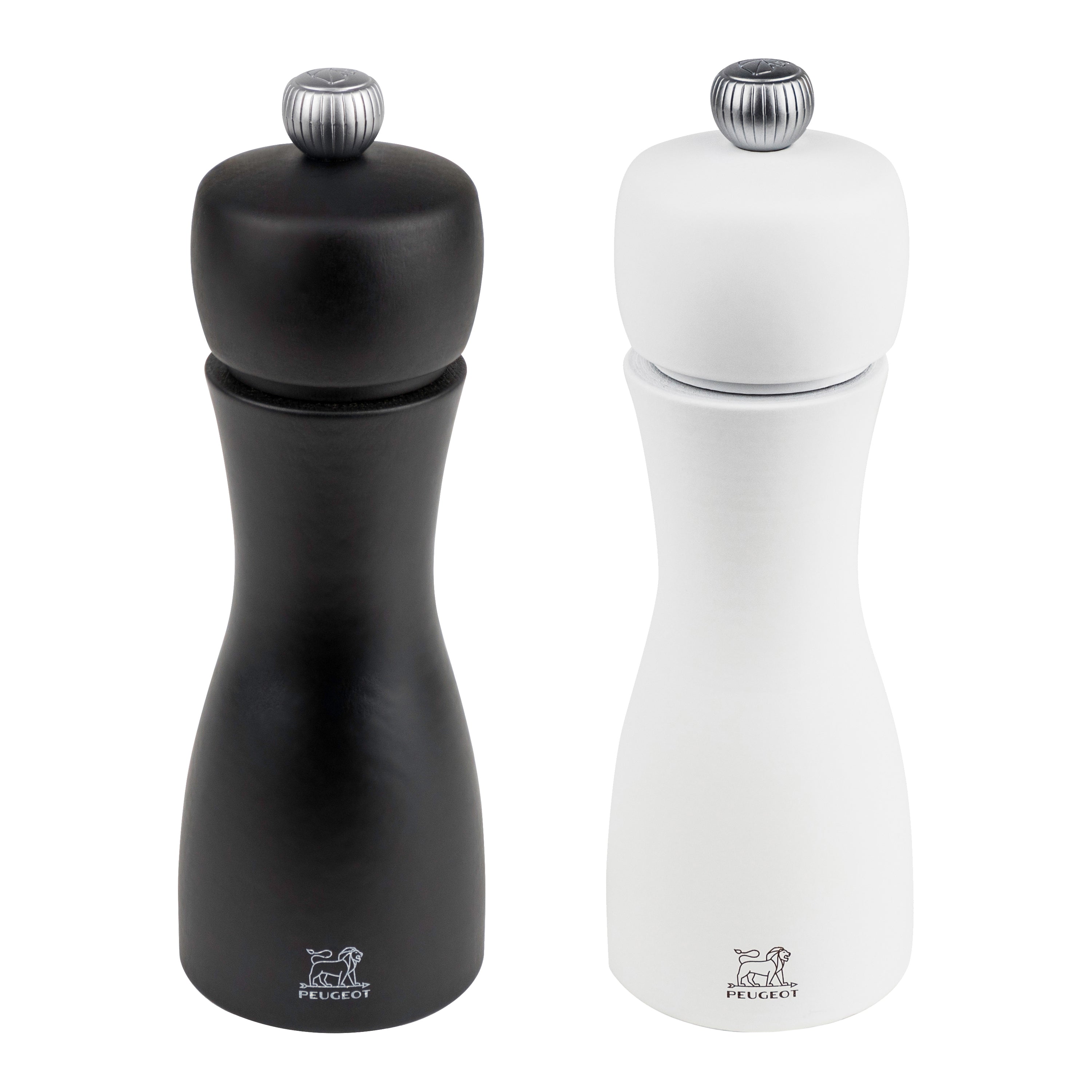 Peugeot Tahiti peper- en zoutmolens De Tahiti molens van Peugeot hebben een klassiek maalwerk dat eenvoudig met de hand is in te stellen. De instelknop voor de grofheid van de maling zit aan de bovenzijde van de molen. Draai deze knop verder aan voor een fijne maling en draai de knop losser voor een grovere maling.