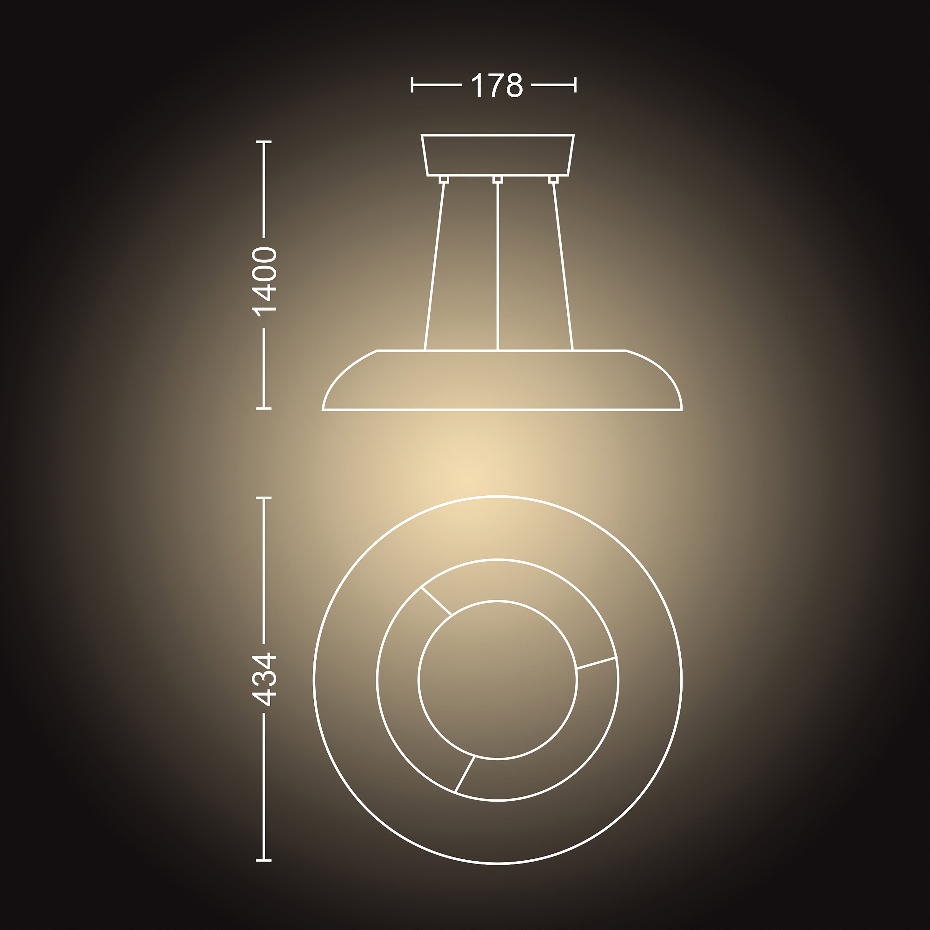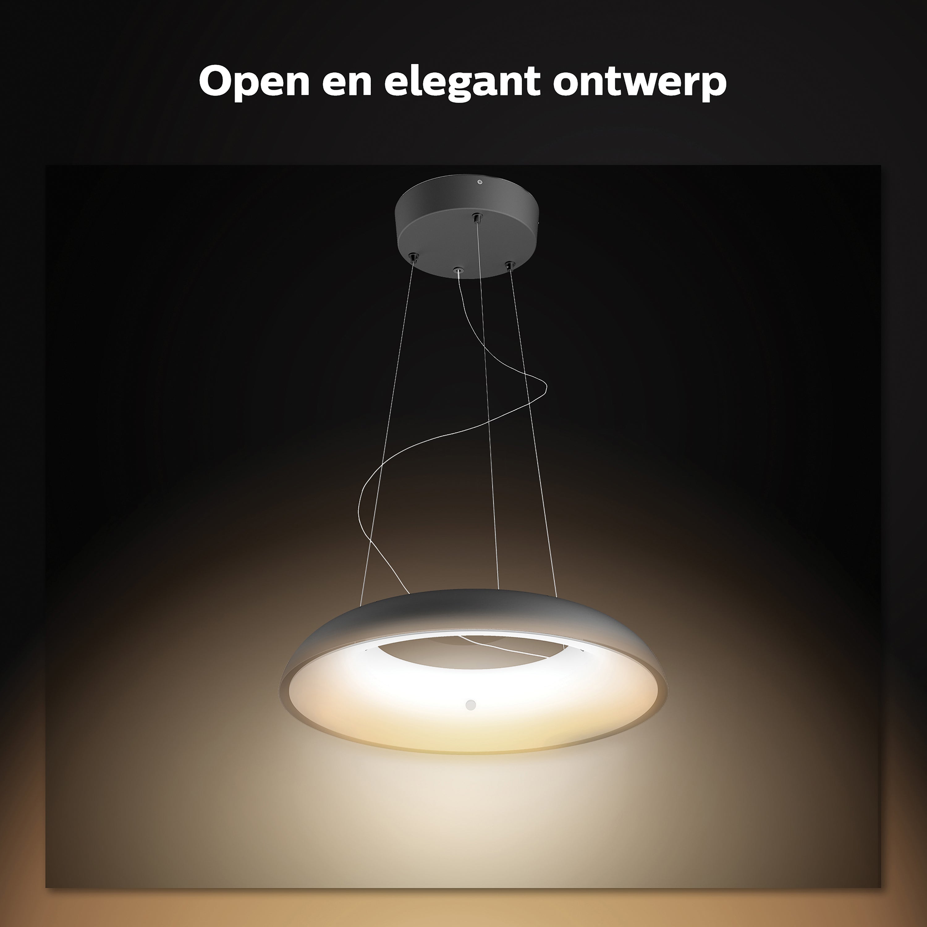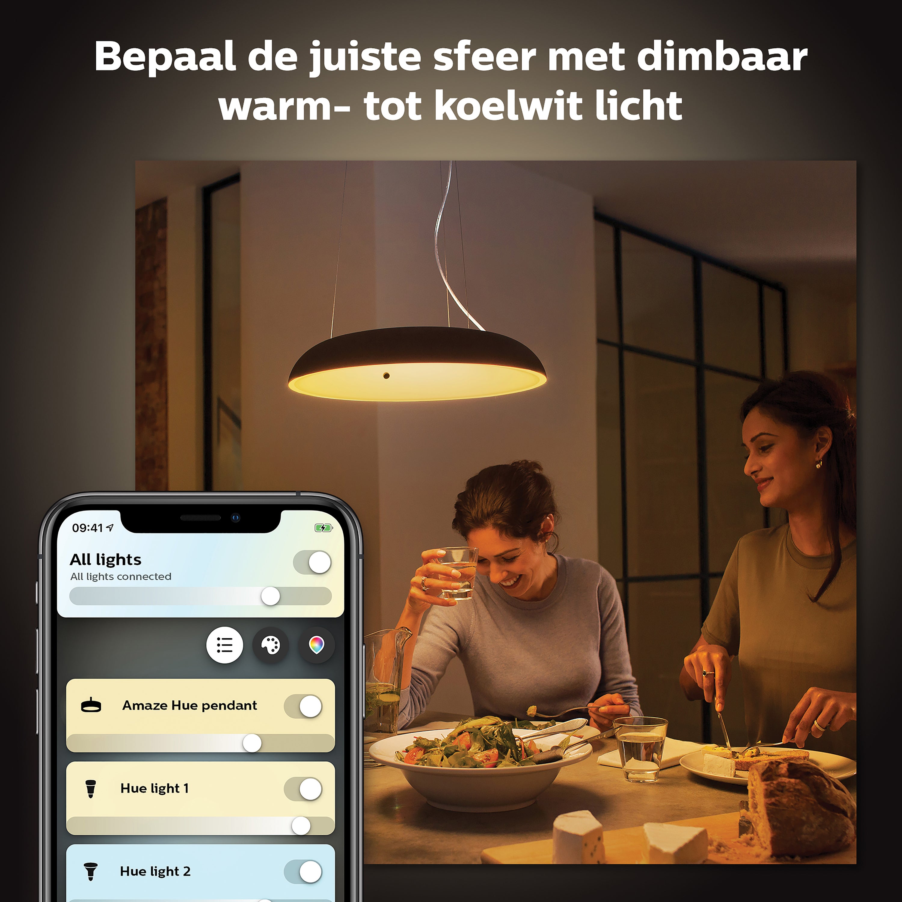 Dankzij de unieke vormgeving past deze Philips Hue Amaze hanglamp in elk interieur. Zijn ingebouwde LED-lamp geeft tot 50.000 tinten wit licht. Gebruik de meegeleverde Hue dimmerswitch om van lichtrecept te wisselen. Bedien hem ook via de Hue app.