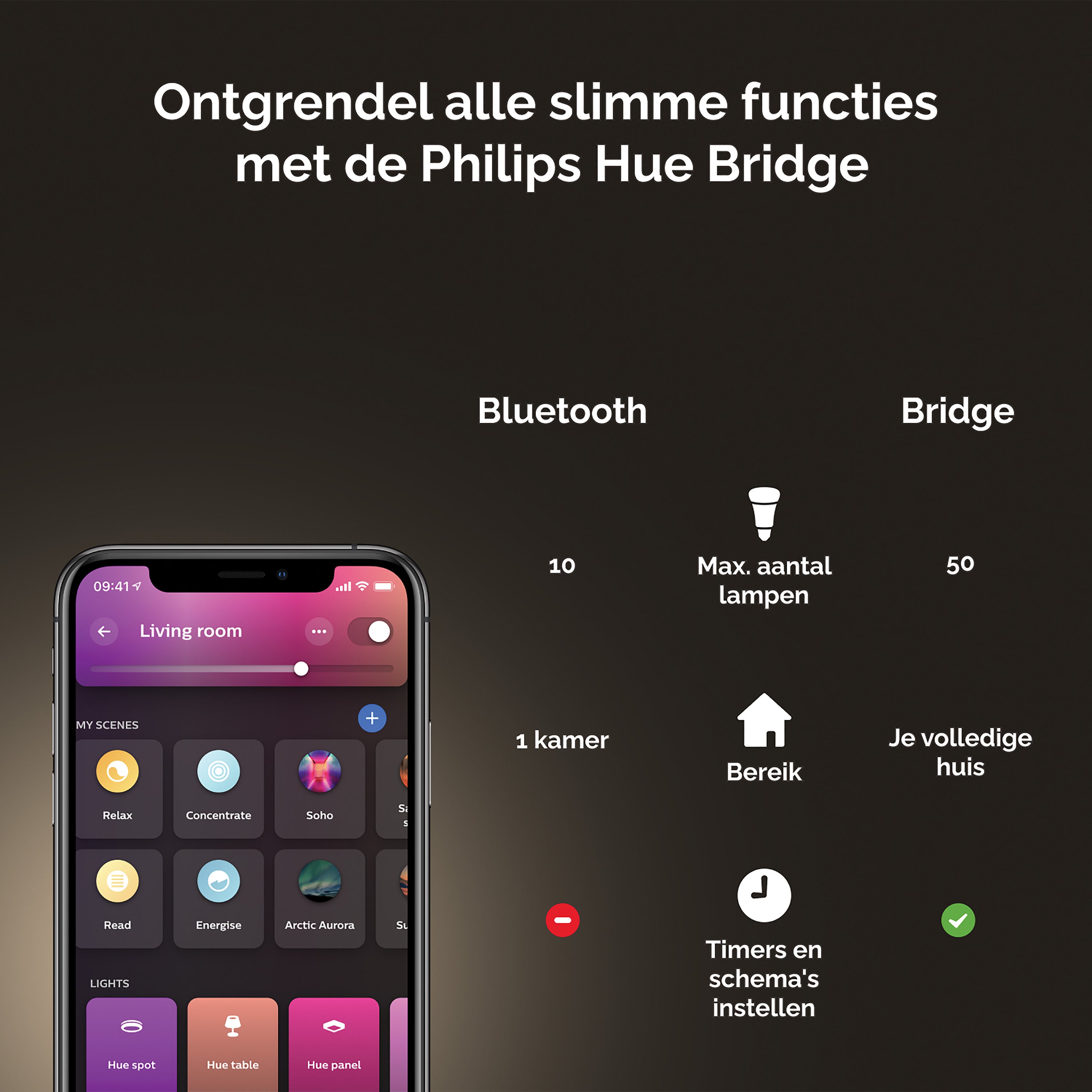 Philips is wereldwijd toonaangevend en marktleider op het gebied van energiezuinige verlichtingsoplossingen. Philips levert innovatieve producten welke geënt zijn op zijn merkbelofte: 'Innovation for you'. Philips Hue is onderdeel hiervan en biedt een groot assortiment aan slimme lampen, armaturen en accessoires voor binnen én buiten. De lampen worden gekoppeld aan Wi-Fi of Bluetooth en zijn te bedienen met een app of afstandsbediening. Nog nooit was je huis verlichten zo gemakkelijk.