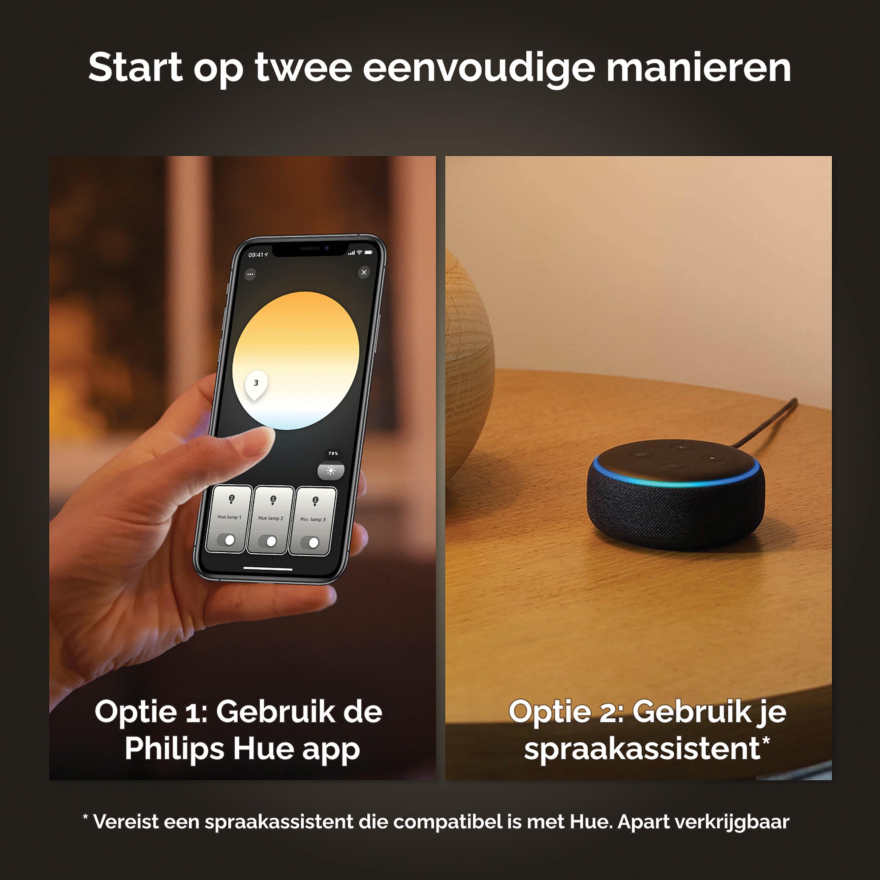 Philips is wereldwijd toonaangevend en marktleider op het gebied van energiezuinige verlichtingsoplossingen. Philips levert innovatieve producten welke geënt zijn op zijn merkbelofte: 'Innovation for you'. Philips Hue is onderdeel hiervan en biedt een groot assortiment aan slimme lampen, armaturen en accessoires voor binnen én buiten. De lampen worden gekoppeld aan Wi-Fi of Bluetooth en zijn te bedienen met een app of afstandsbediening. Nog nooit was je huis verlichten zo gemakkelijk.