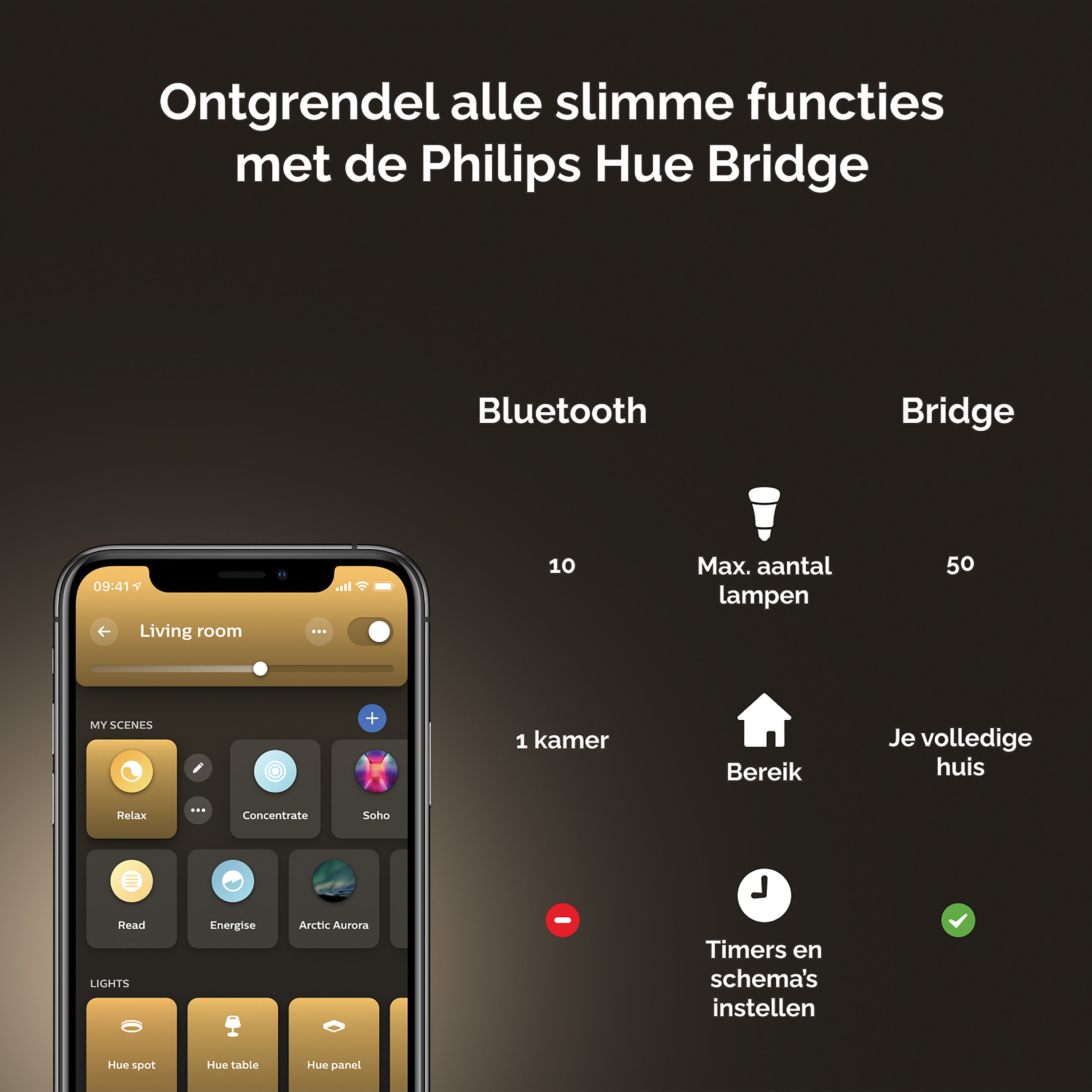 Philips is wereldwijd toonaangevend en marktleider op het gebied van energiezuinige verlichtingsoplossingen. Philips levert innovatieve producten welke geënt zijn op zijn merkbelofte: 'Innovation for you'. Philips Hue is onderdeel hiervan en biedt een groot assortiment aan slimme lampen, armaturen en accessoires voor binnen én buiten. De lampen worden gekoppeld aan Wi-Fi of Bluetooth en zijn te bedienen met een app of afstandsbediening. Nog nooit was je huis verlichten zo gemakkelijk.