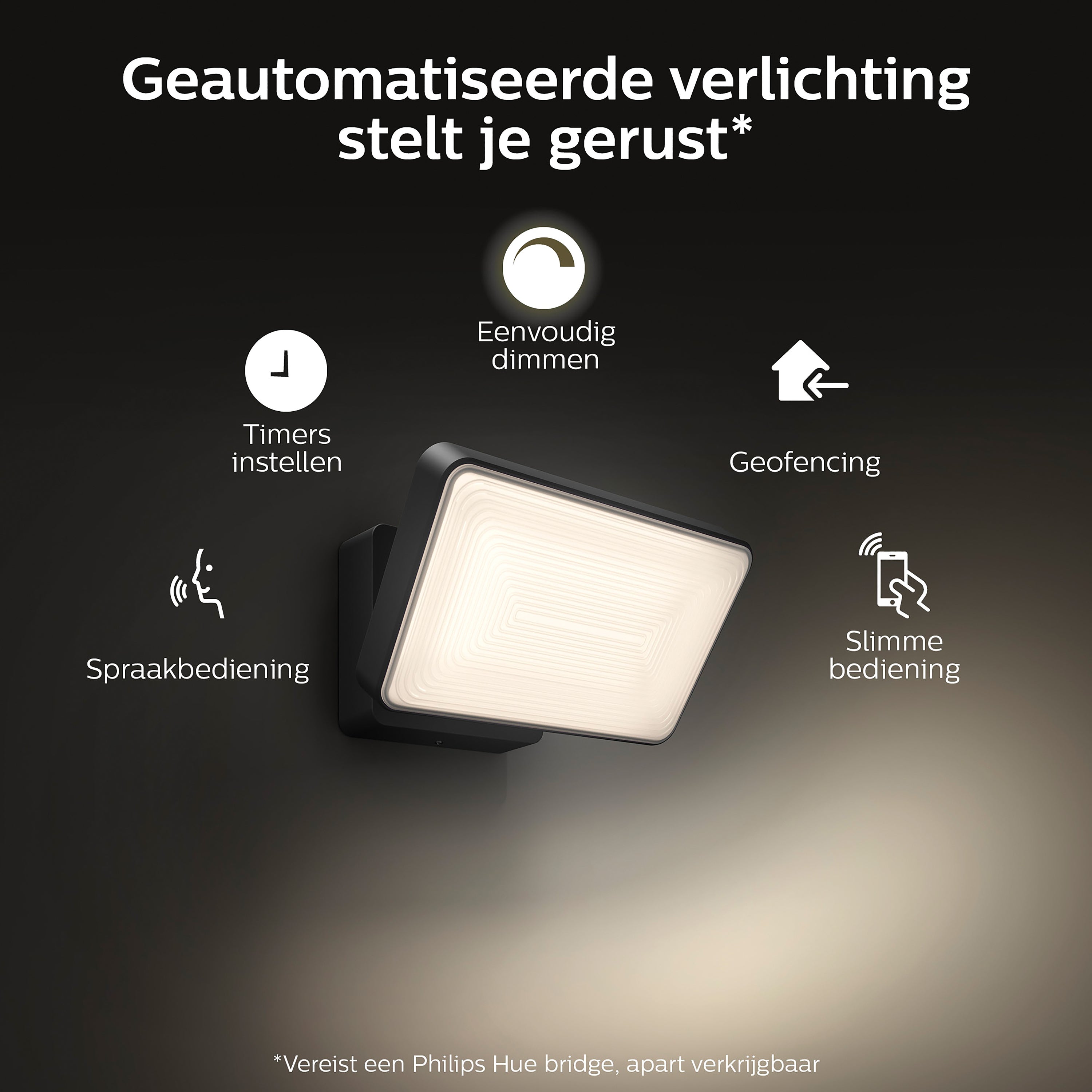 Philips is wereldwijd toonaangevend en marktleider op het gebied van energiezuinige verlichtingsoplossingen. Philips levert innovatieve producten welke geënt zijn op zijn merkbelofte: 'Innovation for you'. Philips Hue is onderdeel hiervan en biedt een groot assortiment aan slimme lampen, armaturen en accessoires voor binnen én buiten. De lampen worden gekoppeld aan Wi-Fi of Bluetooth en zijn te bedienen met een app of afstandsbediening. Nog nooit was je huis verlichten zo gemakkelijk.