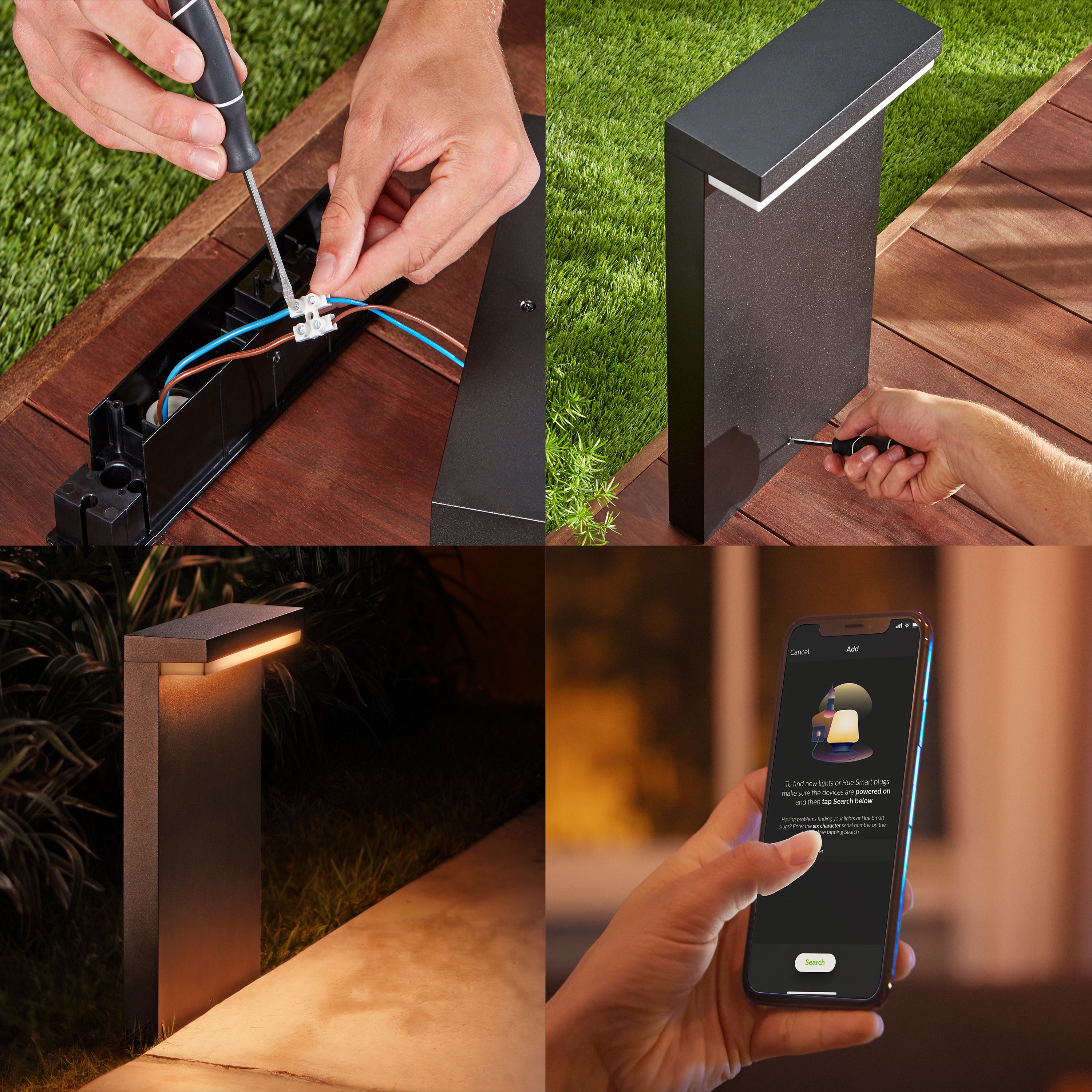 Philips Hue Outdoor verlichting Dankzij Philips Hue Outdoor verlicht je nu niet alleen je woning, maar ook je tuín slimmer. Verbind je buitenlamp met een Philips Hue Bridge en het draadloze verlichtingssysteem is gemakkelijk te bedienen via de Hue app op je telefoon. Zo stel je eenvoudig lichtschema's in, zorg je ervoor dat de lamp automatisch aangaat bij thuiskomst en bedien je de lampen ook als je ver van huis bent. Wel zo veilig!