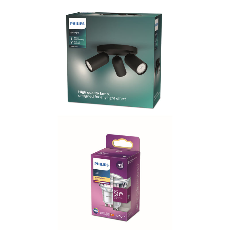 Philips Pongee Opbouwspot - Incl. Philips LED Lamp - 3 Spots