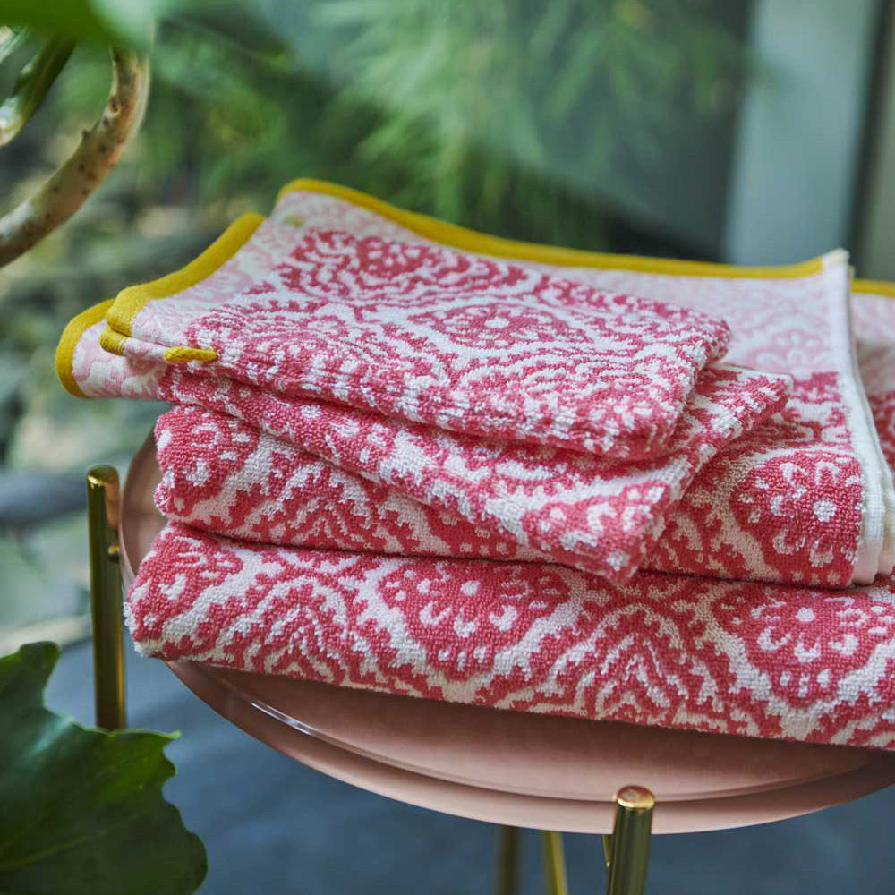 - Het stijlvolle jacquard motief brengt kleur in de badkamer!