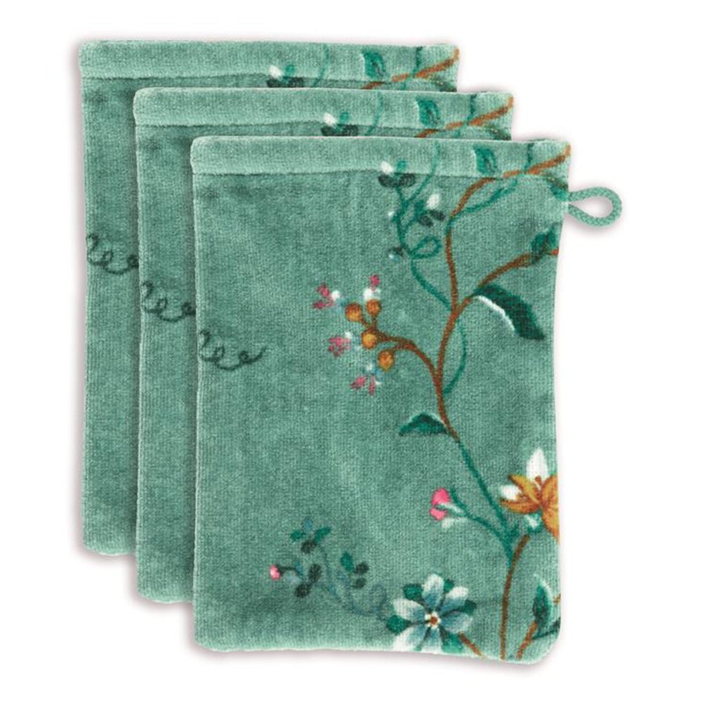 Pip Studio Les Fleurs Washand 16 x 22 cm - Set van 3 - Groen