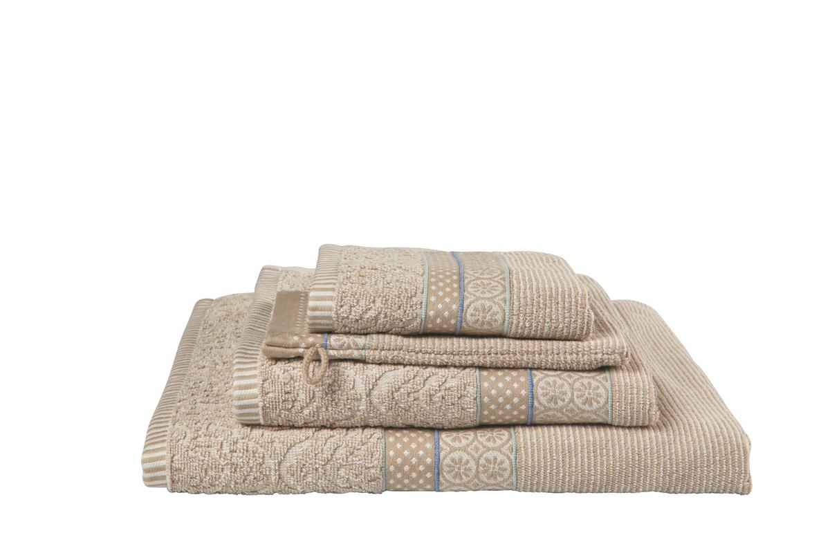 De Soft Zellige badhanddoek heeft een streepjes dessin. Aan beide zijkanten zitten drie biesjes. Daar tussenin zitten drie verschillende, stijlvolle jacquard geweven, bloemenpatronen. De badhanddoek heeft een gestreepte boordafwerking. Je kan de badgoedserie Soft Zellige perfect combineren met de andere badgoedseries van Pip Studio. Dit geeft een leuk mix and match effect in je badkamer.