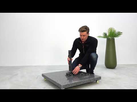 De Madrid-Hawaii parasolvoet is een zware voet van maar liefst 90 kg. De parasolvoet is gemaakt van hardsteen. Doordat de voet gepolijst is, voelt deze glad aan en heeft hij een chique uitstraling. Wil je de parasol verplaatsen? De wieltjes onder de parasolvoet zorgen ervoor dat je de zweefparasol eenvoudig kunt verrijden. Wanneer de parasol op z'n plek staat kun je de wieltjes op slot zetten middels een rem.